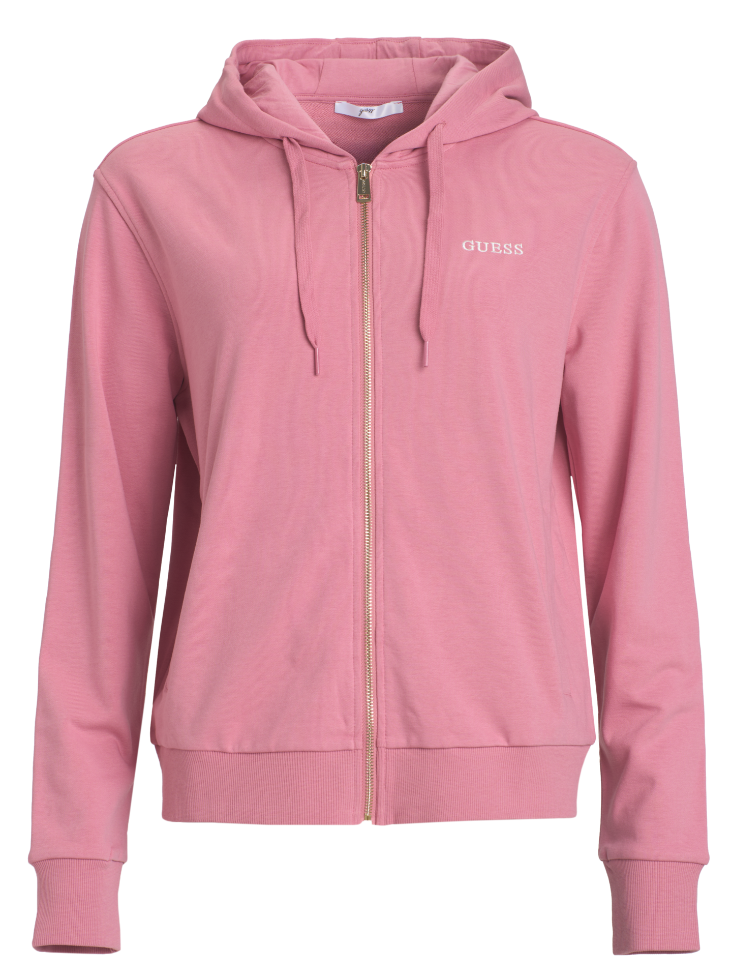Huppari vetoketjulla ja Guess logolla. Resorit helmassa ja hihoissa, huppu nyörillä.