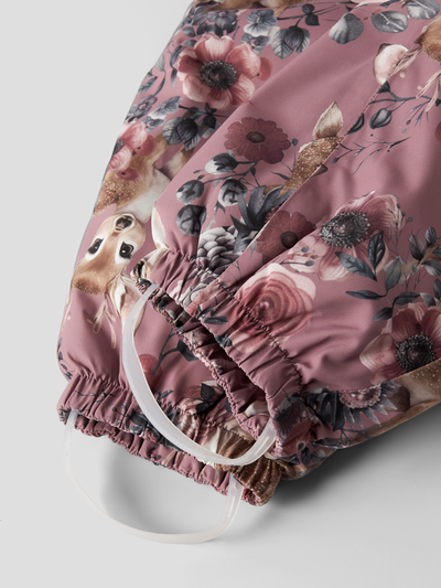Lasten vedenpitävä talvihaalari jossa on suloinen eläinaiheinen kuviointi. Haalarissa on turvallisuutta kohentava irrotettava huppu. Vetoketjukiinnitys vetoketjusuojuksella, joka suojaa ihoa vetoketjun väliin jäämiseltä. Täysin teipatut saumat, jotka viimeistelevät vedenpitävyyden. Joustavat hihansuut. Säädettävät kumilenkit lahkeensuissa. Lämmin ja pehmeä fleecevuori vartalo-osassa lämmön ja pehmeän tuntuman saavuttamiseksi. Koristeelliset heijastinyksityiskohdat. Haalarin takana on eristetty istuinalue, joka pitää lapsesi lämpimänä hänen istuskellessaan ulkona. Varmista, että lapsesi olo pysyy lämpimänä ja mukavana talvivaatteissa, jotka sopivat ihanteellisesti ulkona leikkimiseen kylminä päivinä. Toiminnallinen materiaali on kestävää, vedenpitävää, hengittävää ja tuulenpitävää; täydellistä ulkoleikkeihin kylminä, tuulisina ja sateisina päivinä. Materiaalissa on vettähylkivä BIONIC-FINISH® ECO käsittely. Tuote on osittain kierrätysmateriaalista valmistettu.