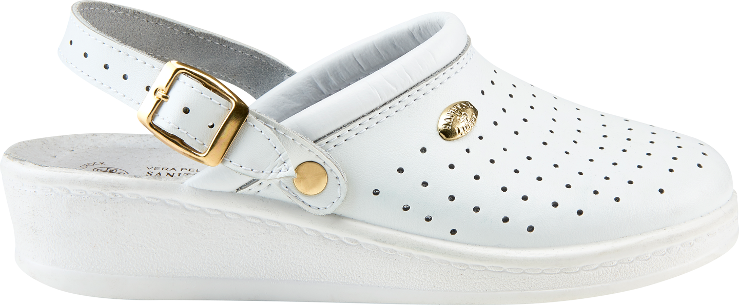 Mukavuutta ja hyvinvointia jaloillesi Sanital Light sandaaleilla. Anatominen muotoilu ja "Antichock" iskua vaimentava pohja takaavat jaloillesi mukavan päivän niin töissä kuin vapaa ajallakin. Laadukkaat materiaalit takaavat kengille pitkän käyttöiän.
