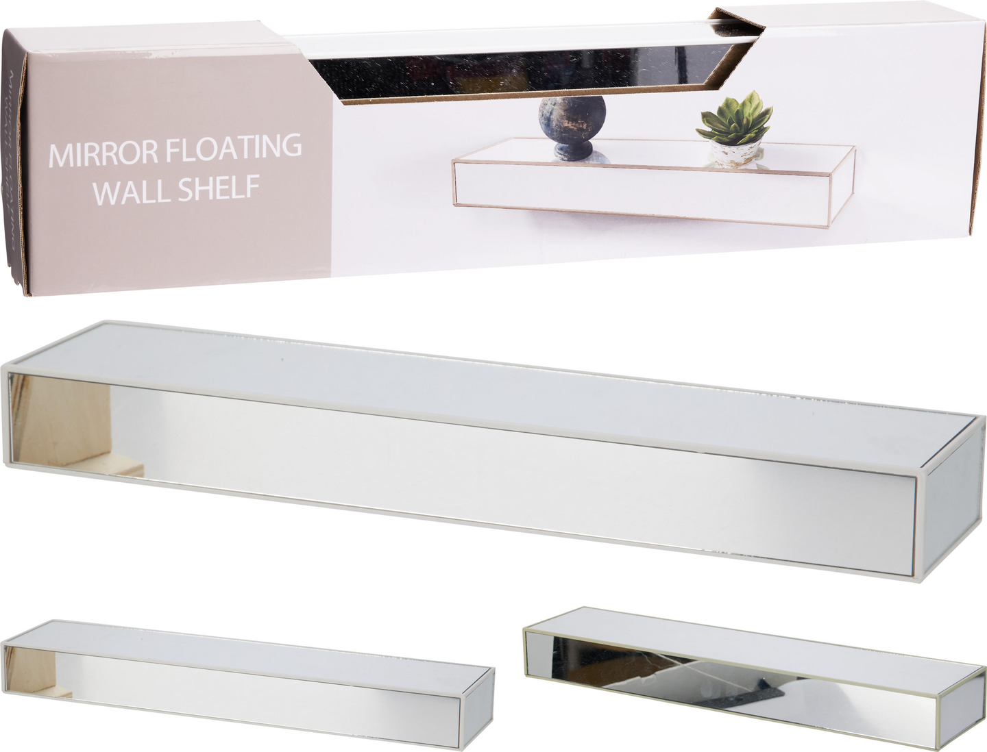 Hyllyssä on minimalistinen muotoilu ja sen peilipinnat heijastavat valoa, luoden tilan tuntua ja avaruutta huoneeseen. Peilipinta tuo huoneeseen myös ripauksen ylellisyyttä ja modernia ilmettä. Hylly toimii upeana taustana koriste-esineille, kasveille tai valokuville. Se on täydellinen lisä olohuoneeseen, makuuhuoneeseen, kylpyhuoneeseen tai eteiseen.
