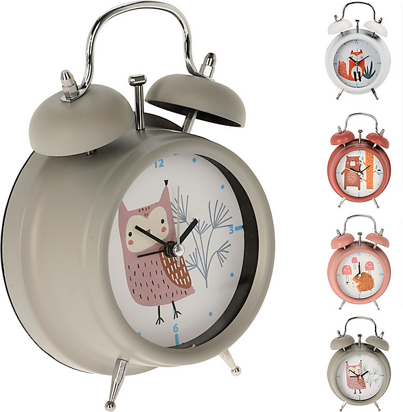 Lasten herätyskello, jonka kellotaulussa seikkailevat erilaiset metsäneläimet. Kelloja on 4 erilaista: kettu, nallekarhu, siili ja pöllö. Kello toimii 1 x AA paristolla, joka ei sisälly pakkaukseen. Huom! Valitettavasti mallia/väriä ei voi valita verkkokaupasta tilattaessa, mutta lisätietoihin voi tilausvaiheessa lisätä toiveen, jonka toteutamme varastotilanteen mukaan.