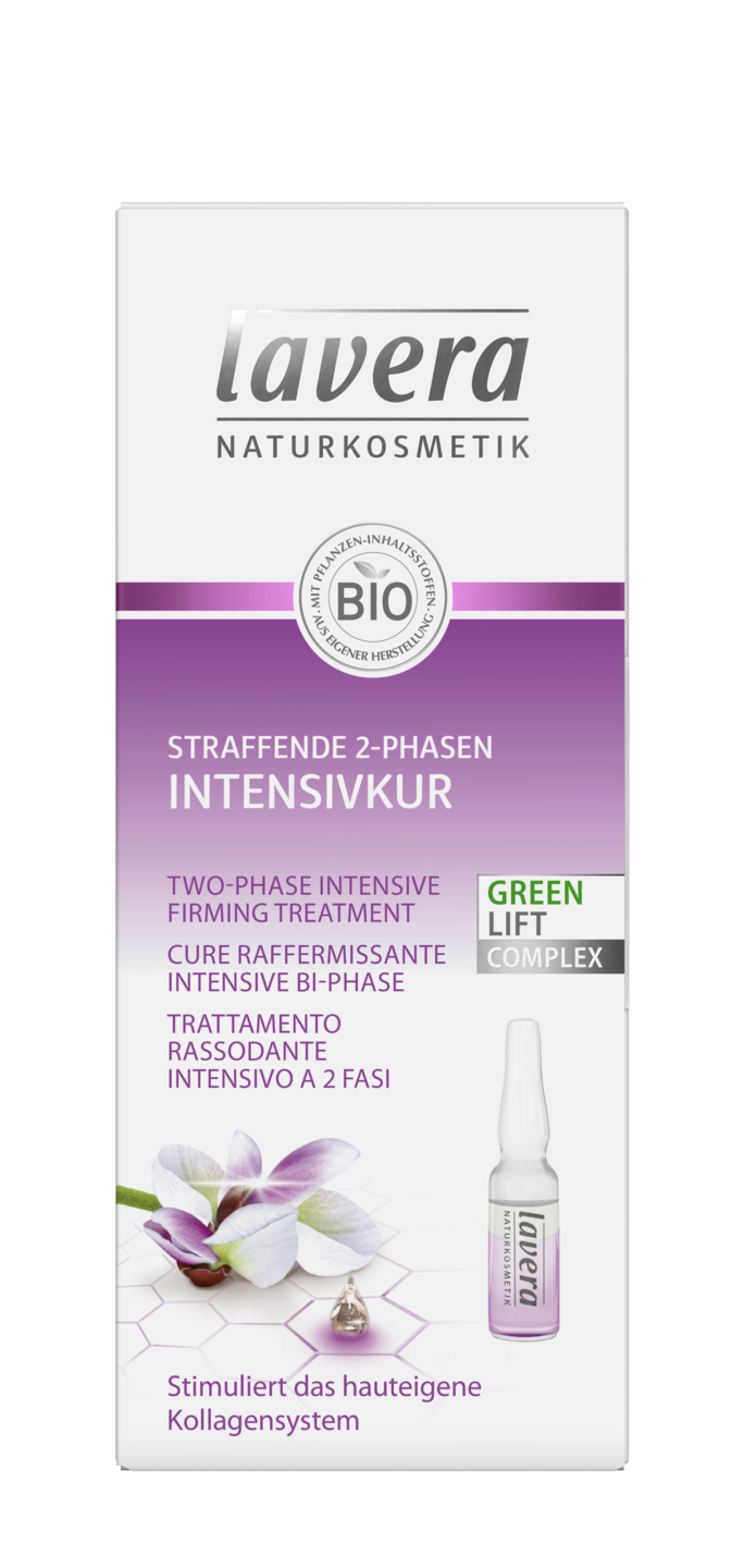 lavera kaksi-faasinen kiinteyttävä tehohoito sisältää Green Lift Complex –raaka-aineseoksen, joka tukee ihon omaa kollageenintuotantoa. Tehohoito auttaa häivyttämään juonteita ja ryppyjä sekä tekee ihosta sileän ja pehmeän. Innovatiivinen kaksi-faasinen koostumus aktivoituu ravistamalla ampullia. NaTrue-sertifioitu ja vegaaninen. Pakkaus sisältää 7 x 1 ml lasiampullia avattavassa laatikossa. Suositellaan käytettäväksi kerran viikossa ylläpitävänä hoitona tai viikon mittaisena tehohoitona (1 ampulli / päivä). Parhaimman tuloksen saamiseksi tehohoito tulisi levittää puhtaalle iholle ennen seerumia. Käyttö: Ravista ampullia, jotta raaka-aineet aktivoituvat. Avaa lasinen ampulli varovasti käyttämällä mukana tulevaa avaajaa. Aseta avaaja ampullin päähän muoviosan lovi itseäsi kohti ja napsauta ampulli varovasti auki. Kaada tuote kämmenelle. Levitä iholle kevyesti taputtelemalla. Varoitus! Avatun ampullin reuna on terävä, varo koskettamasta sillä ihoa.
