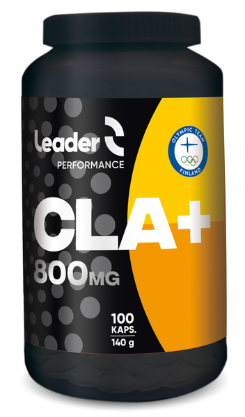 Leader Performance CLA+ 800 mg on safloriöljystä valmistettu konjugoitu linolihappovalmiste. Linolihappo osallistuu kuljettamaan rasvahappoja solun sisällä energiaksi. CLA on saavuttanut suosion niin laihduttajien kuin urheilijoiden keskuudessa. Valmistettu Suomessa.