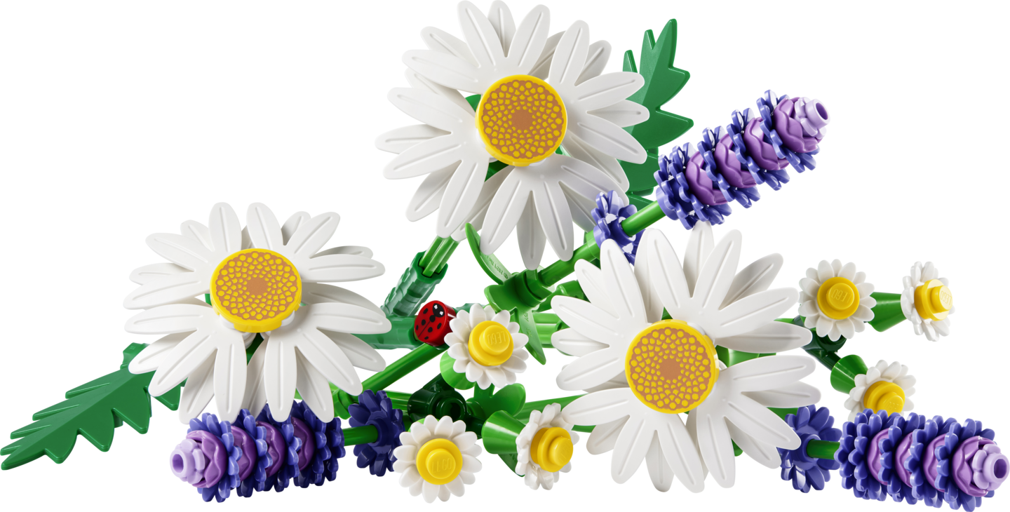 Tytöillä ja pojilla on takuulla hauskaa, kun he rakentavat kauniin kimpun, jossa on 3 isoa päivänkakkaraa, 2 varrellista pieniä päivänkakkaroita, 3 laventelinvarpua ja kirkkaanvihreät varret. Pieni LEGO kukkakimppu on sekä pirteä että rauhoittava. Siinä on realistisen näköiset kukat, ja yhdessä laventelinvarvussa on soma leppäkerttu nuoria rakentelijoita ilahduttamaan. Valmis LEGO kimppu on kaunis koriste makuuhuoneeseen tai kirjoituspöydälle. Näitä kukkia ei tarvitse kastella, eikä se kuihdu koskaan.