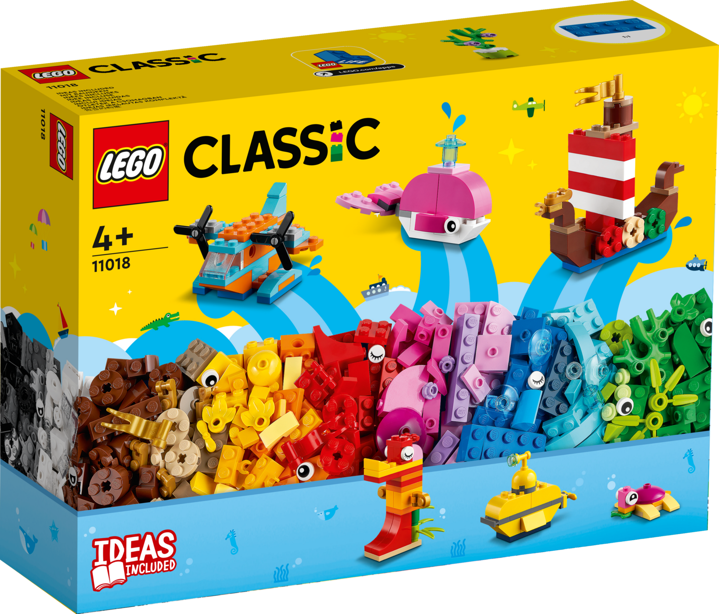Leikin lomassa oppiminen saa nyt uusia ulottuvuuksia. LEGO® Classic Luovat merileikit setissä on LEGO palikoita kaikissa sateenkaaren väreissä ja kuvitetut ohjeet 6 inspiroivaan minirakennelmaan. Lapset voivat uppoutua hupihetkiin yhdessä ystävien ja perheenjäsenten kanssa ja rakentaa viikinkilaivan, keltaisen sukellusveneen, vedenalaisen dronen, merihevosen, valaan ja kilpikonnan. Ja sitten onkin aika napata mukaan 2 lisäpussillista palikoita ja rakentaa ikiomia LEGO luomuksia.