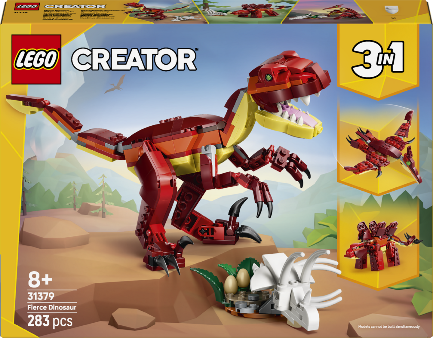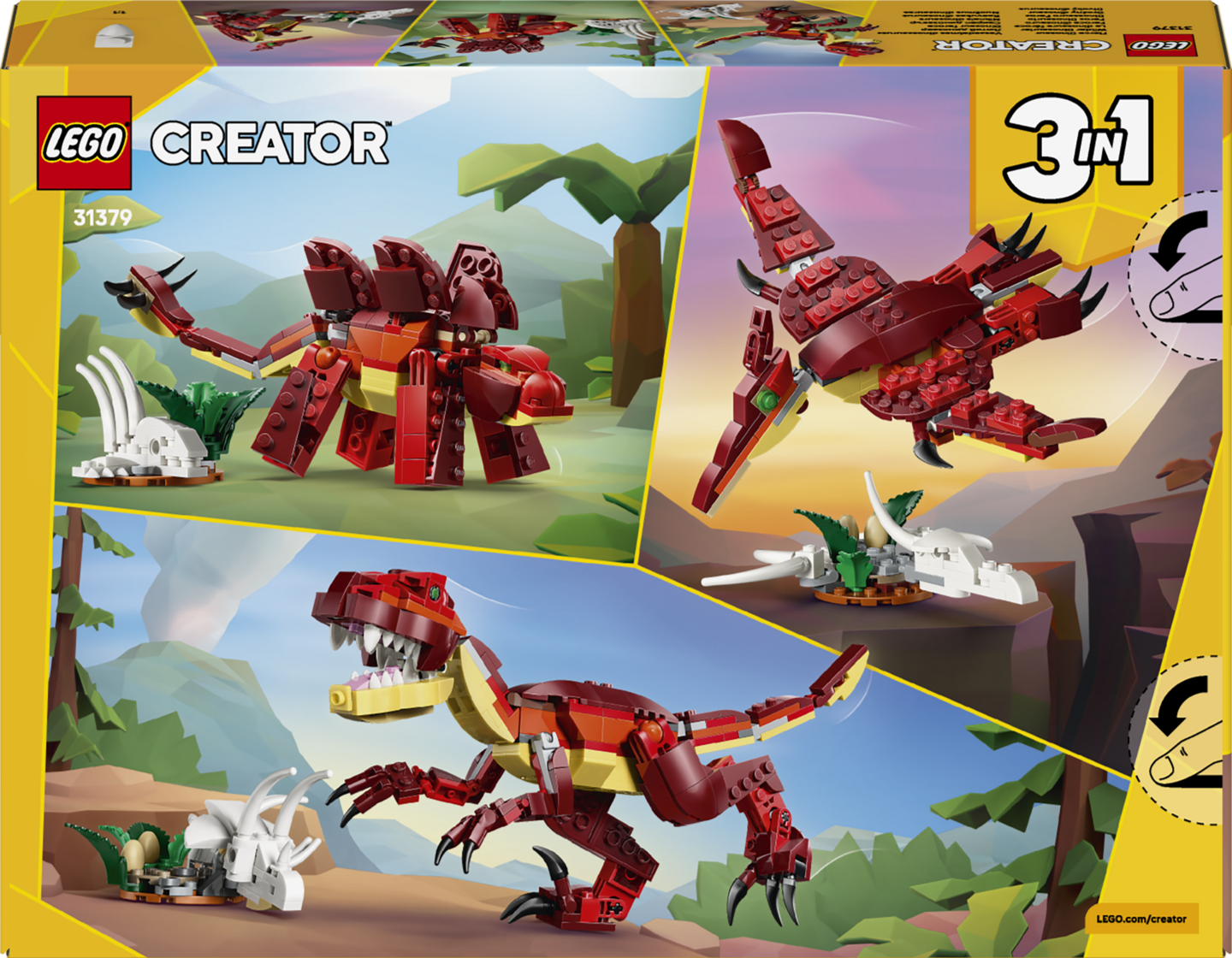 LEGO® Creator 3 in 1 Hurja dinosaurus (31379) rakennussetti sisältää kaiken tarvittavan yli 8-vuotiaiden lasten esihistoriallisiin seikkailuihin. Upean yksityiskohtaisen setin palikoista voi rakentaa 3 erilaista dinohahmoa.