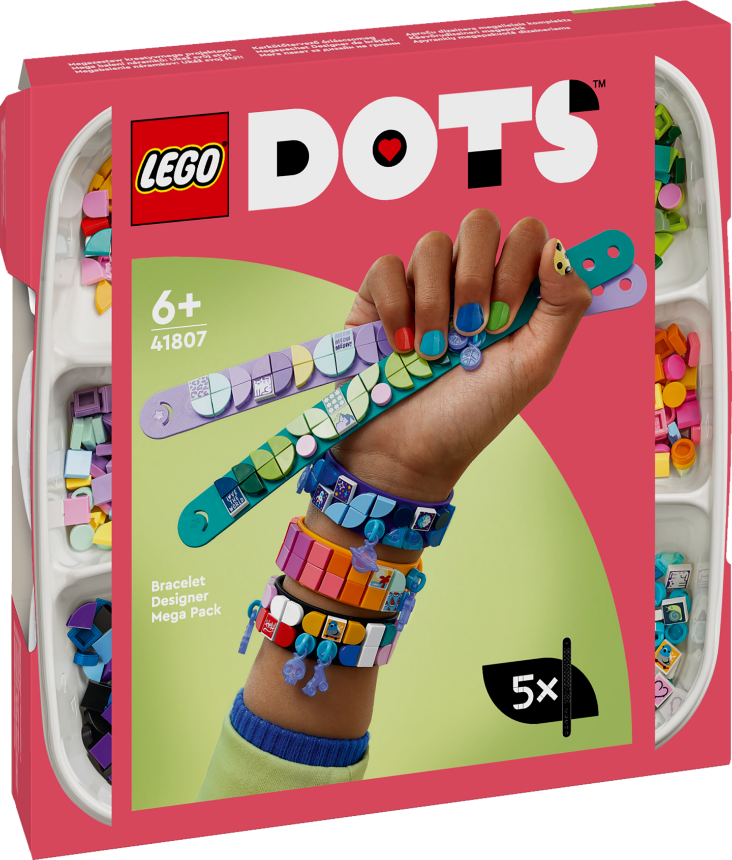 Etsitkö kivaa yhteistä, luovaa puuhaa yli 6-vuotiaille askartelun ystäville? Ilahduta lapsia LEGO® DOTS Rannekorusuunnittelijan megapakkaus (41807) setillä, joka sisältää 5säädettävää, eriväristä ranneketta, lukuisia värikkäitä laattoja sekä 12opaalinhohtoista erikoisriipusta. Mukana on myös 20yllätyslaattaa, joissa on erilaisia kuvakkeita, lausahduksia, hahmoja ja kuvioita. Setin tarvikkeilla voi syventyä 5eri teemaan, joita ovat eläimet, katutyyli, luonto, avaruuden ihmeet ja hauskat kesäjutut. Rannekkeiden koristeluun tarkoitetut laatat löytyvät lokerikosta, ja pakkauksen ideoilla lasten luovuus saa lentävän lähdön.