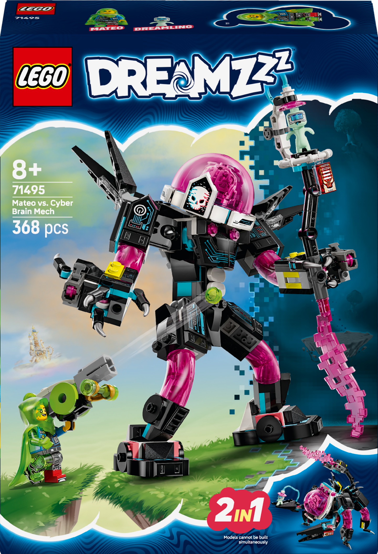 Nuoret uneksijat rakentavat ensin hauskan värikkään kapselin, jonka he voivat muuttaa kyberälykkö-robottileluksi tai kyberälykkö-skorpionirobottileluksi. Upeita yksityiskohtia pursuava robottilelusetti sisältää nuppipyssyjä, limatykin, avattavan ohjaamon ja asemoduuleja, jotka ovat yhteensopivia muiden vuoden 2025 LEGO DREAMZzz kokoelman settien kanssa (myydään erikseen). Mateo-minihahmo, joka käyttää Z-Blobia suojaavana viittanaan, sekä uniolentohahmo herättävät setin eloon ja innostavat mielikuvituksellisiin roolileikkeihin.
