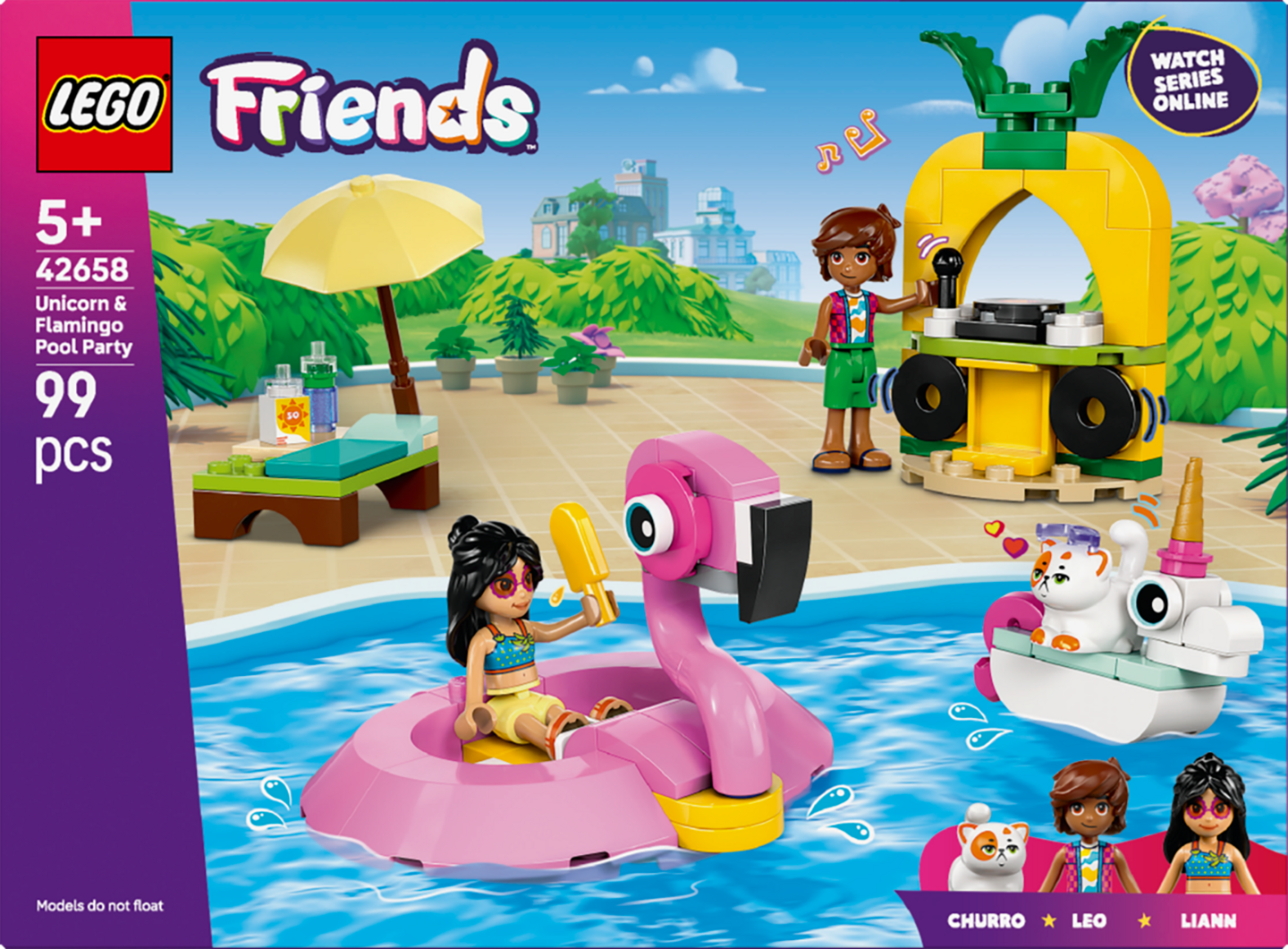 Lapset pääsevät käyttämään luovuuttaan kertoessaan tarinaa ystävyksistä. Leo, Liann ja Churro nauttivat hauskoista allasbileistä yksisarvis- ja flamingokellukkeineen. Rakennettavassa flamingokellukkeessa on tilaa 2 hahmolle ja se sisältää pidikkeen 2 mehujäälle. Pienempi yksisarviskelluke sopii täydellisesti Churro-kissalle, joka liittyy mielellään ystävysten seuraan. Setti sisältää myös lepotuolin, DJ-kopin, jossa on pyörivä levy ja mikrofoni, aurinkovoidepurkin ja juoman, jotka kannustavat yhä mielikuvituksellisempiin roolileikkeihin.