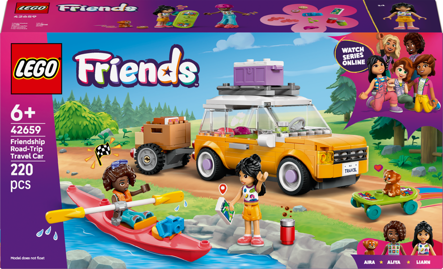 Lähetä lapset seikkailujen pyörteisiin tällä LEGO® Friends Ystävysten hyvin varusteltu matka-auto (42659) rakennussetillä, joka on tarkoitettu 6 vuotta täyttäneille tytöille ja pojille. Tämä toiminnantäyteinen setti sisältää auton ja perävaunun, 2 LEGO Friends mininukkea, söpön koiranpentuhahmon ja paljon tarvikkeita hauskoihin leikkihetkiin.