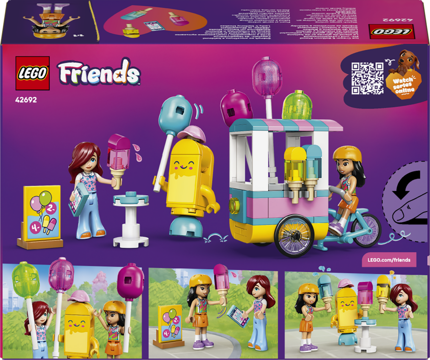 Yli 6-vuotiaat tytöt ja pojat voivat uppoutua herkkuhetkien siivittämiin seikkailuihin ja luoviin leikkeihin LEGO® Friends Jäätelö‑ ja ilmapallokoju setin (42692) parissa. Mielikuvitusleikkeihin innostava lelu sisältää hauskoja yksityiskohtia ja söpöjä tarvikkeita.