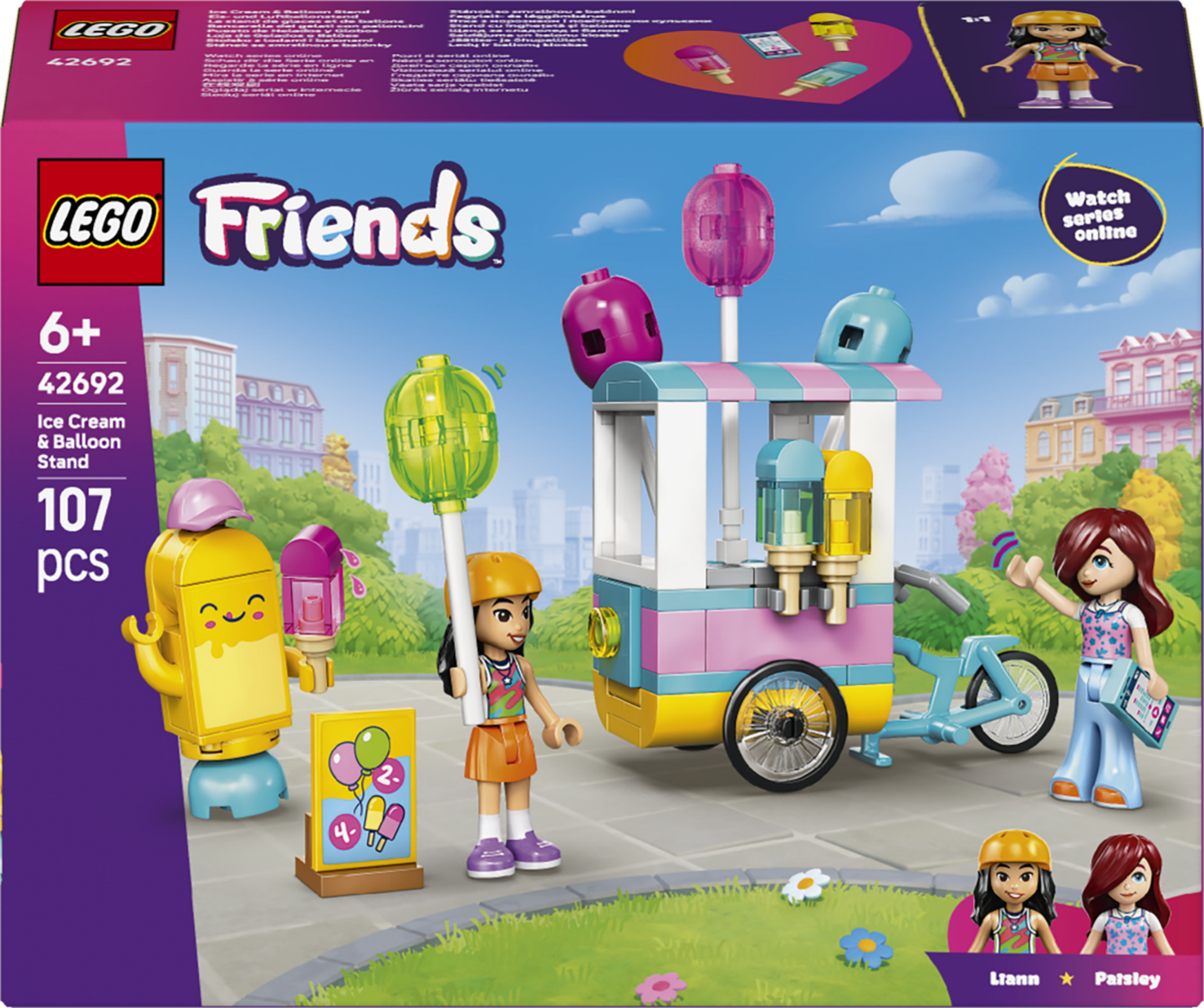 Liannin ja Paisleyn mininukkehahmot auttavat lapsia uppoutumaan tarinaan, kun he valmistelevat kojun ilmapallojen ja jäätelön myyntiä varten. Liannilla on kypärä, jotta hän voi ajaa polkupyörällä ja vetää jäätelökojua. Leikit jatkuvat hurmaavan mehujäämaskotin, tuoteluettelon, kassakoneen ja puhelimen parissa. Mukana on myös pöytä, jonka ääressä ystävät viettävät aikaa yhdessä.