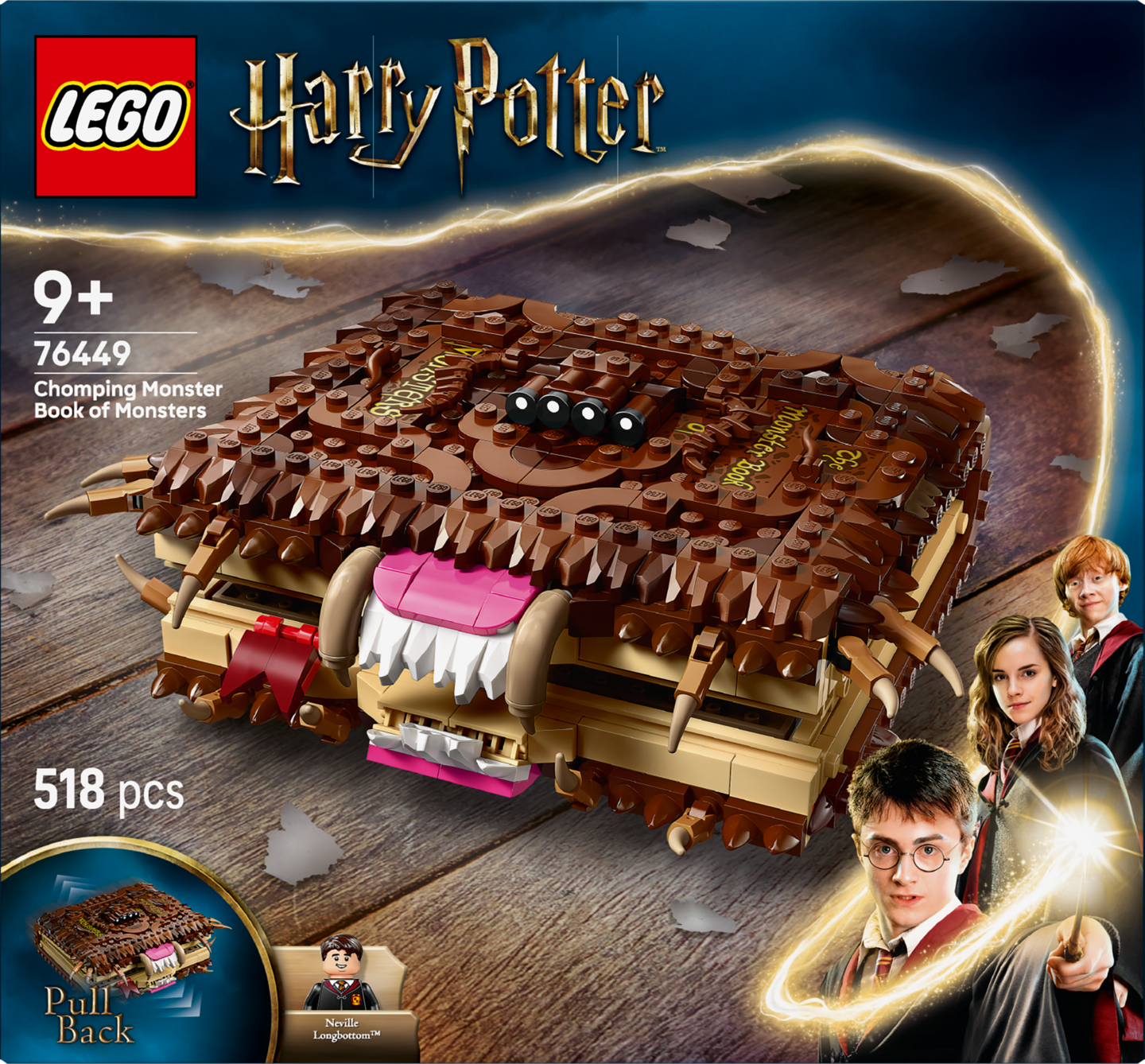 Rakennuslelu sopii syntymäpäivä‑ tai yllätyslahjaksi yli 9-vuotiaille pojille, tytöille ja Harry Potter ‑faneille. Mukana on myös Neville Longbottomin™ LEGO minihahmo, joka kantaa minikokoista Hirvittävän suurta hirviökirjaa. Rakennettavan kirjan ja minihahmon voi yhdistää myös muihin LEGO Harry Potter keräilymalleihin (setit myydään erikseen), niin lasten taianomaiset leikit yltyvät entisestään.