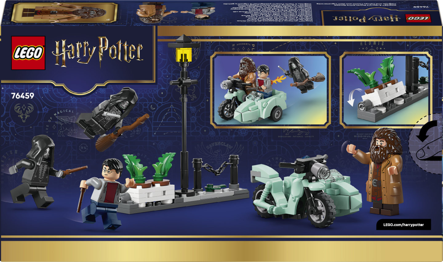 Tämän lapsille suunnatun LEGO® Harry Potter™ moottoripyörälelun (76459) parissa voit kokea uudelleen Harry Potter ja kuoleman varjelukset ‑elokuvan kohtauksen, jossa Hagrid™ ja Harry pakenevat kuolonsyöjiä Likusteritieltä. Kiehtova rakennussetti on hauska syntymäpäivälahja 8 vuotta täyttäneille pojille, tytöille ja faneille. Setti sisältää ensimmäisen LEGO minihahmojen mittakaavassa toteutetun version Hagridin lentävästä moottoripyörästä, 4 LEGO Harry Potter minihahmoa ja Likusteritietä esittävän minirakennelman luovia leikkejä siivittämään.