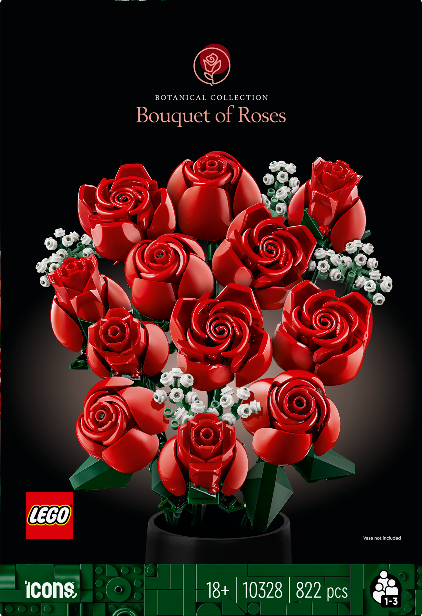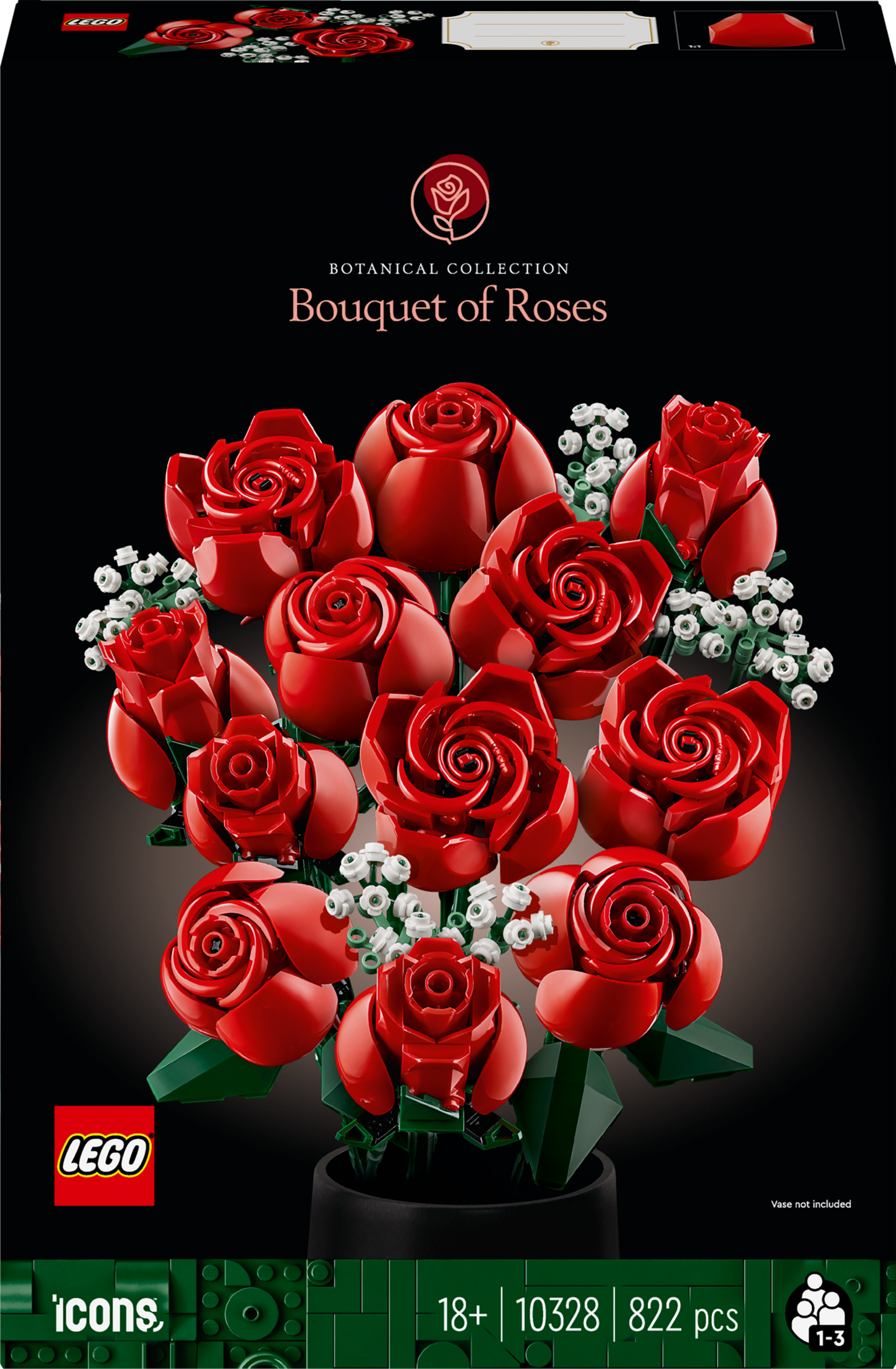 Tämä LEGO kukkakimppu on ilo rakentaa! Osista rakentuu tusina punaisia ruusuja, joista 4 on täydessä kukassa, 4 puhkeamassa kukkaan ja 4 vielä nupullaan. Kukkien vihreät pitkät varret voi sujauttaa maljakkoon. Mukana on myös 4 morsiusharson oksaa pienine valkoisine kukintoineen. Helposti rakennettava kukkakimppu on tyylikäs koriste tilaan kuin tilaan, ja sen voi yhdistää muihin LEGO Botanical Collection tuotesarjan setteihin.