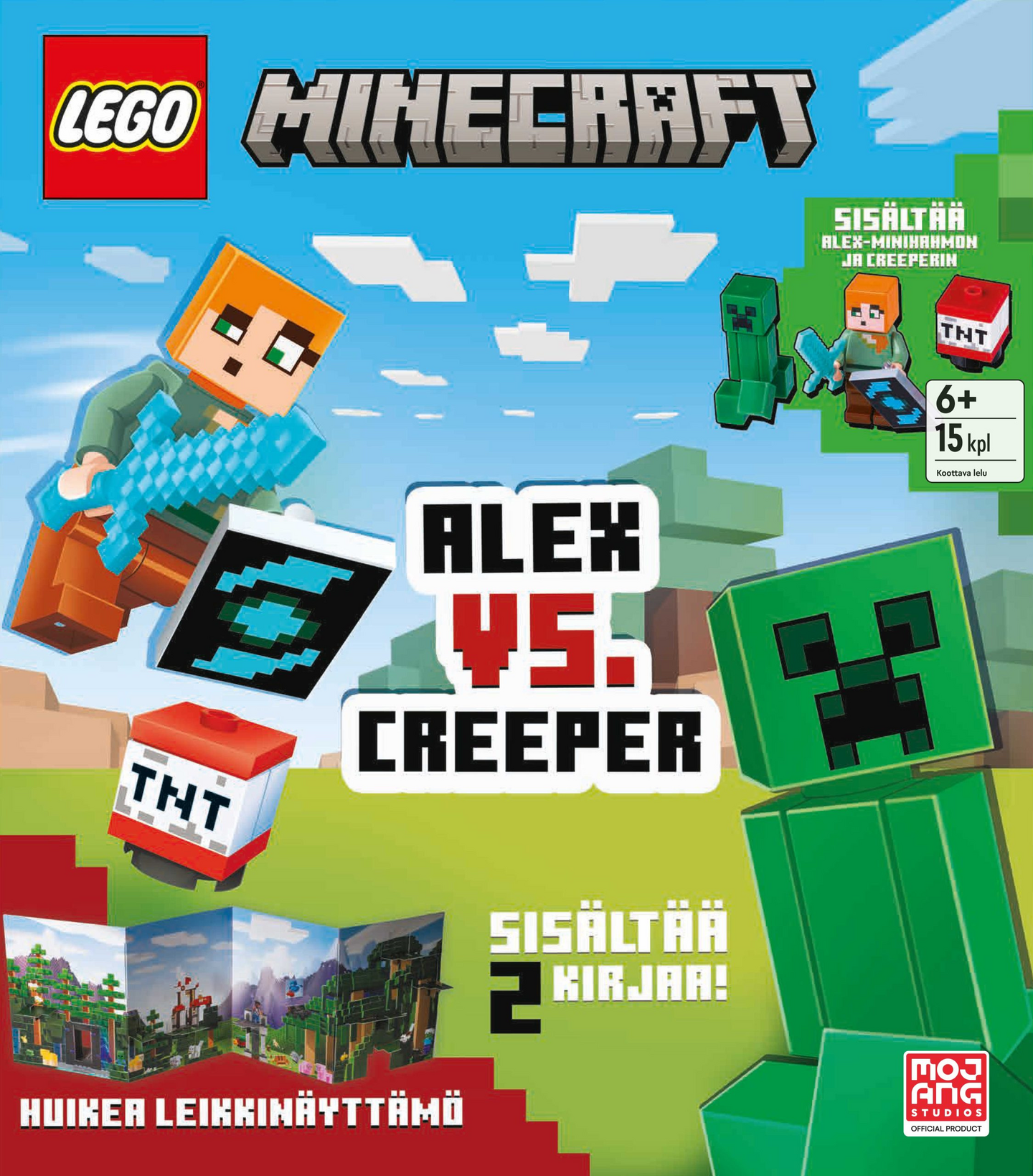 Megapaketti sisältää kaksi kirjaa ja huikean kolmiulotteisen leikkinäyttämön! Mukana myös Alex-minihahmo ja creeper!