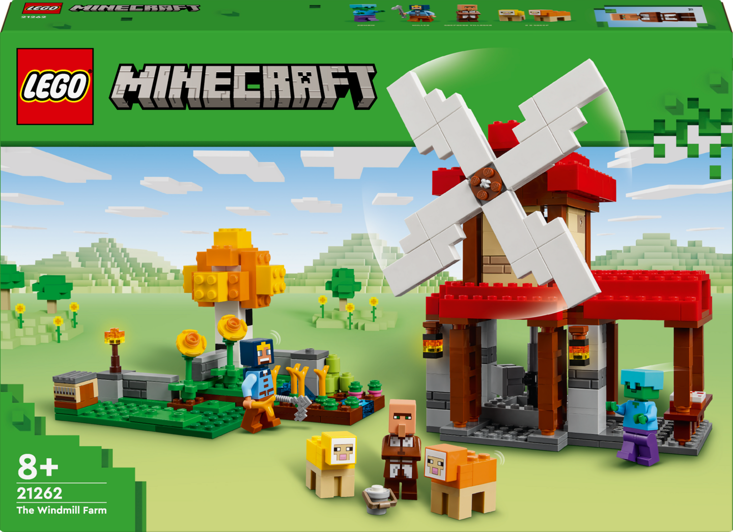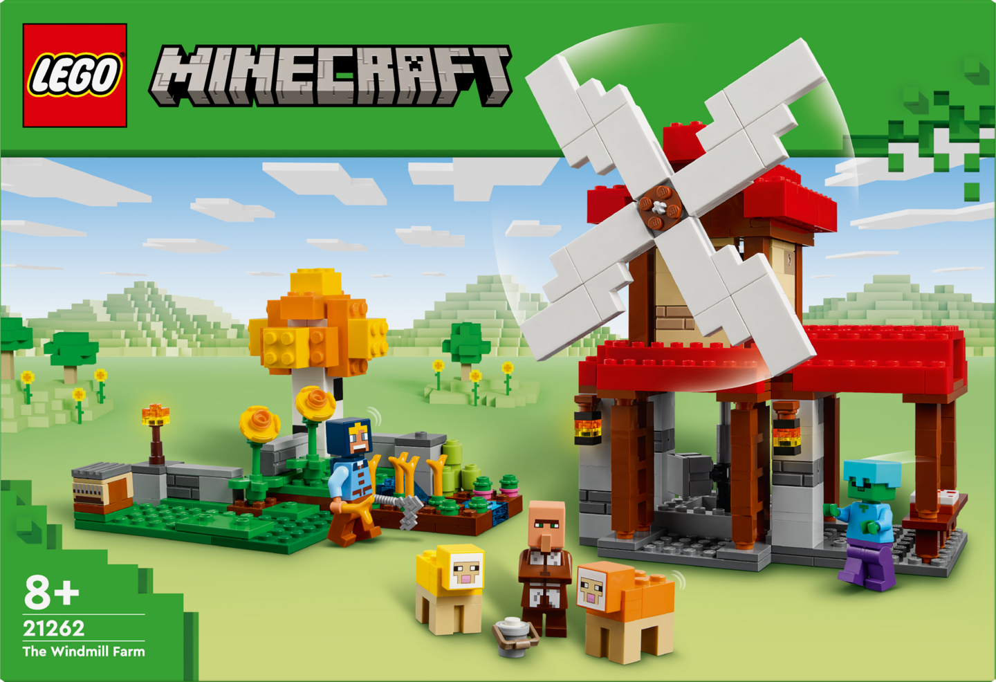 Tuulimylly ja maatila (21262) sisältää kaiken tämän ja paljon muuta videopeli‑ ja Minecraft®-zombien faneille sekä kotieläinten ystäville. Jos etsit parasta Minecraft-lelua 8 vuotta täyttäneille lapsille, tässä maatila-aiheisessa setissä on paljon LEGO® Minecraft malleja ja hahmoja.