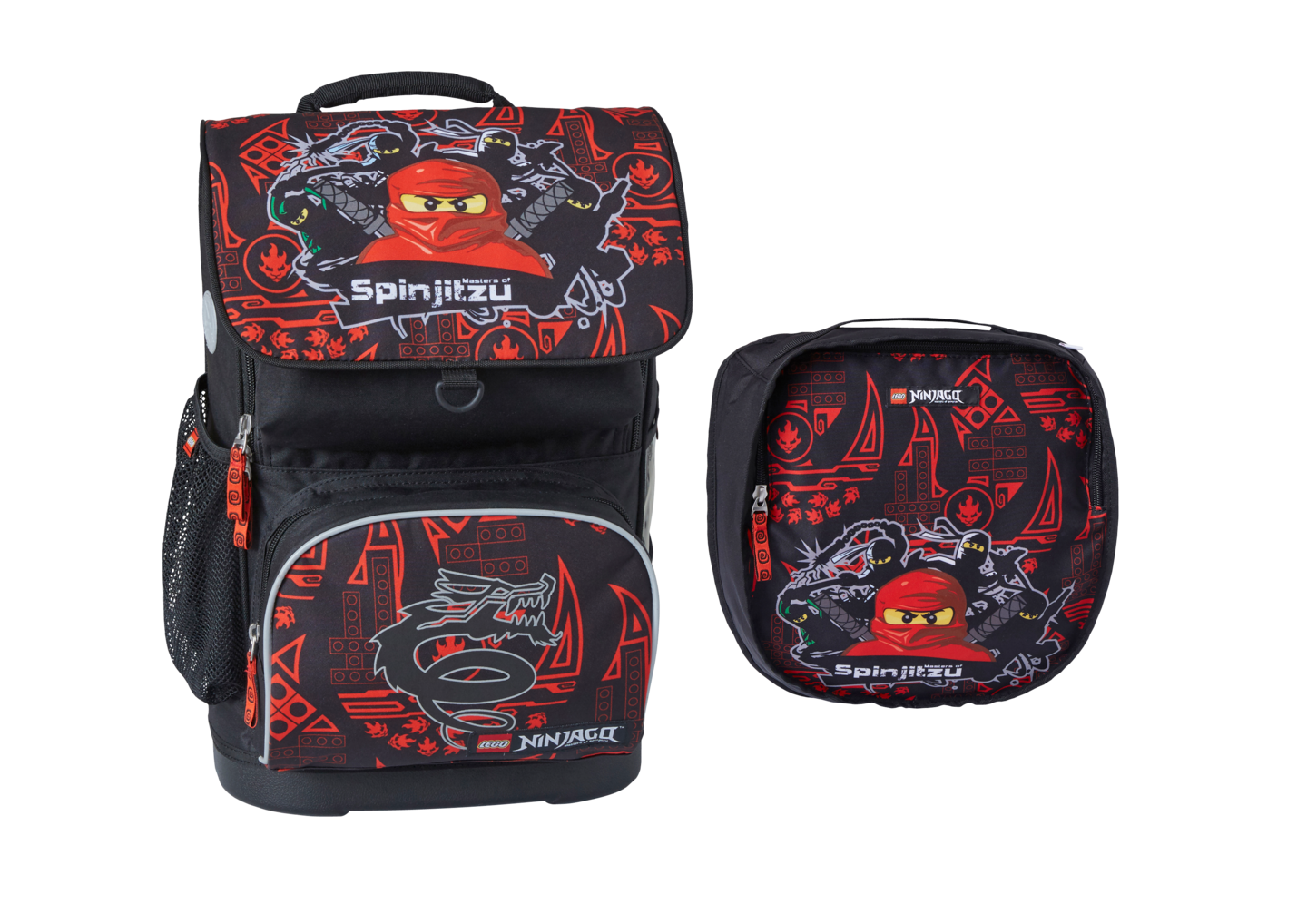 Lego -reppu. Anatomisesti muotoiltu selkäosa, joka on pehmustettu soft-air-mesh-selkäpaneelilla. Repussa on säädettävät pehmustetut olkaimet, jossa myös säädettävä rintaremmi antamassa lisätukea. Kestävästä ja vettähylkivästä materiaalista valmistettu reppu ei sisällä PVC-yhdisteitä. Isossa päätaskussa on tilaa kirjoille ja siinä on avotasku esimerkiksi vihkoille tai muille asioille. Etupuolella on lämpöeristetty ulkotasku eväsrasialle ja sivulla on verkkokankainen pullotasku. Repun mukana tulee lisäksi kätevä jumppapussi, jonka saa kiinnitettyä reppuun. Turvallisuutta tuovat repun heijastimet. Mitat: 28 x 22 x 40 cm. 100% Polyesteriä.