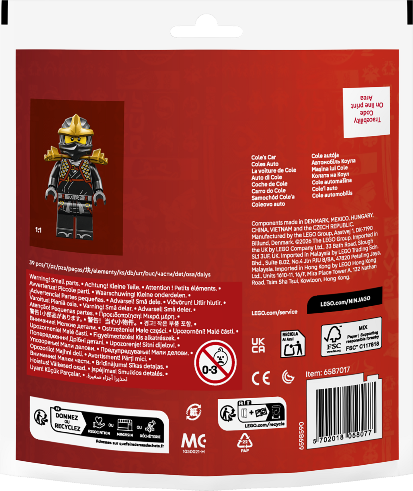 Superhienon ninja-auton miniversio kiidättää 6 vuotta täyttäneet lapset toiminnan pyörteisiin. Auton ratissa istuu kultaisella miekalla varustautunut Cole-minihahmo.