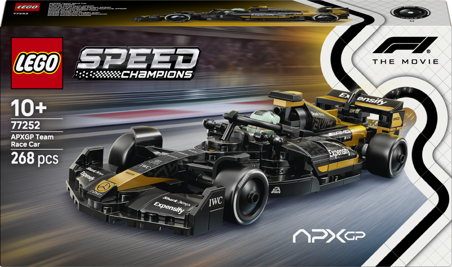 LEGO® Speed Champions APXGP-tiimin kilpa-auto elokuvasta F1® The Movie (77252) innostaa 10 vuotta täyttäneitä poikia ja tyttöjä rakenteluun ja kisaleikkeihin. Pienoismalli sopii myös koristeeksi. Palikoista rakennettavassa pienoismallissa on paljon vuoden 2025 elokuvassa nähdystä autosta tuttuja yksityiskohtia.