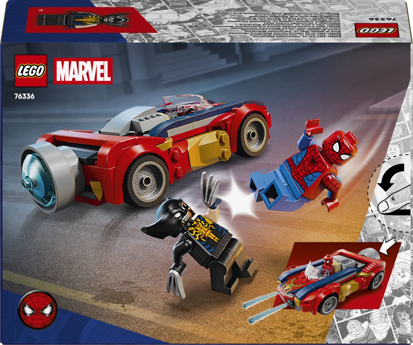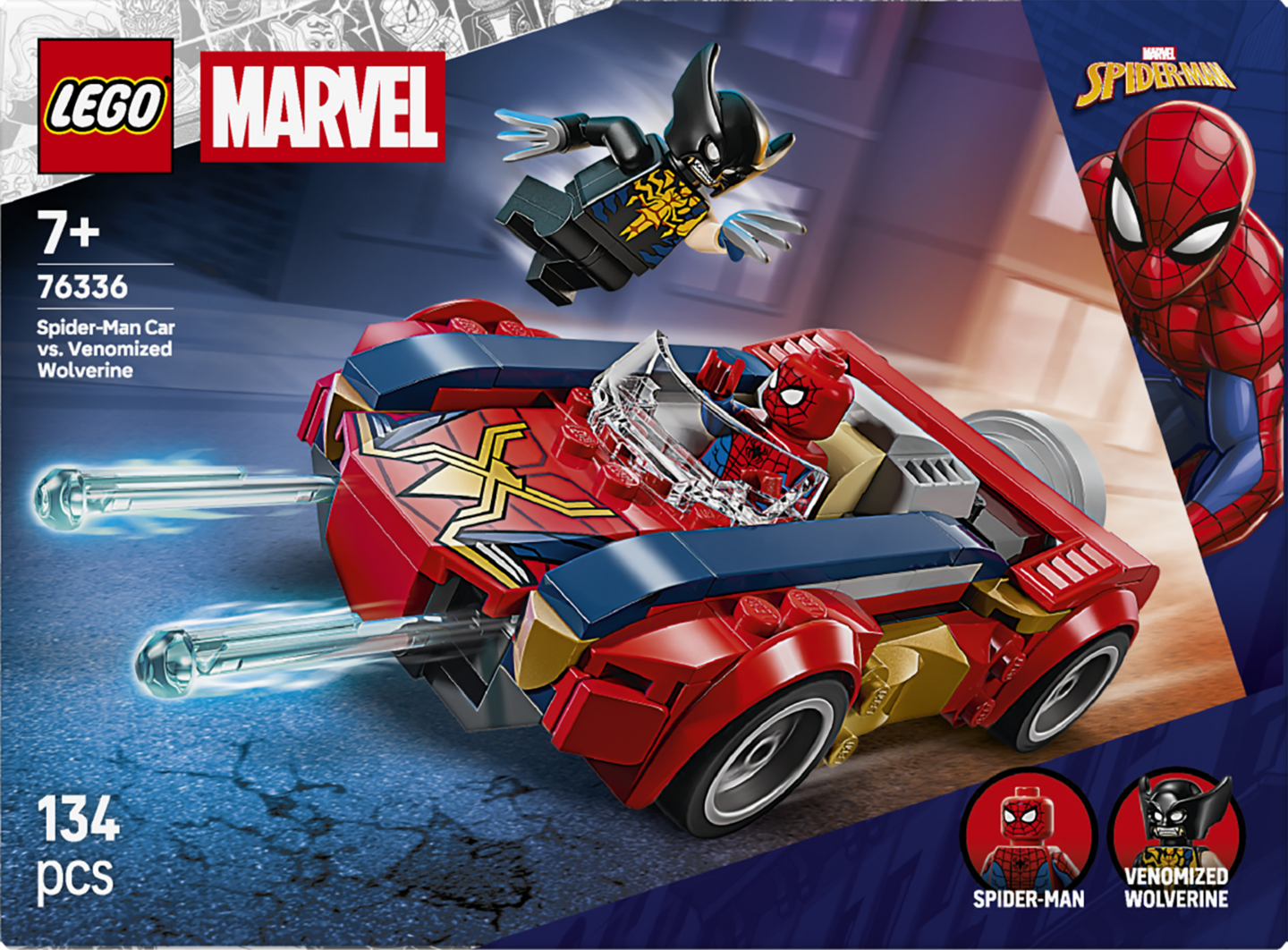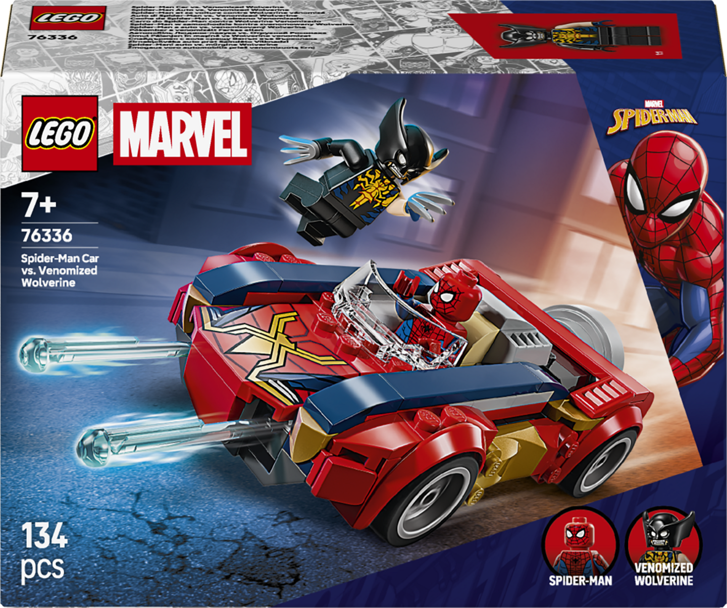 Tämä on ensimmäinen LEGO ǀ Marvel setti, jossa on mukana Venomiksi muuttuneen Wolverinen minihahmo. Taistelutoiminta tapahtuu Spider-Manin autossa ja sen lähettyvillä. Auton etuosassa olevat 2 jousiasetta voi laukaista takaosassa olevalla laukaisimella. Setti on mainio syntymäpäivälahja pienille supersankareille, Marvel-elokuvien ystäville ja Spider-Man-keräilijöille. LEGO Builder sovellus selkeine digitaalisine ohjeineen antaa lapsille itsevarmuutta rakentamiseen. Sovelluksessa he voivat zoomata ja kiertää malleja 3D-näkymässä sekä seurata edistymistään. Rakennussetissä on 134 osaa.