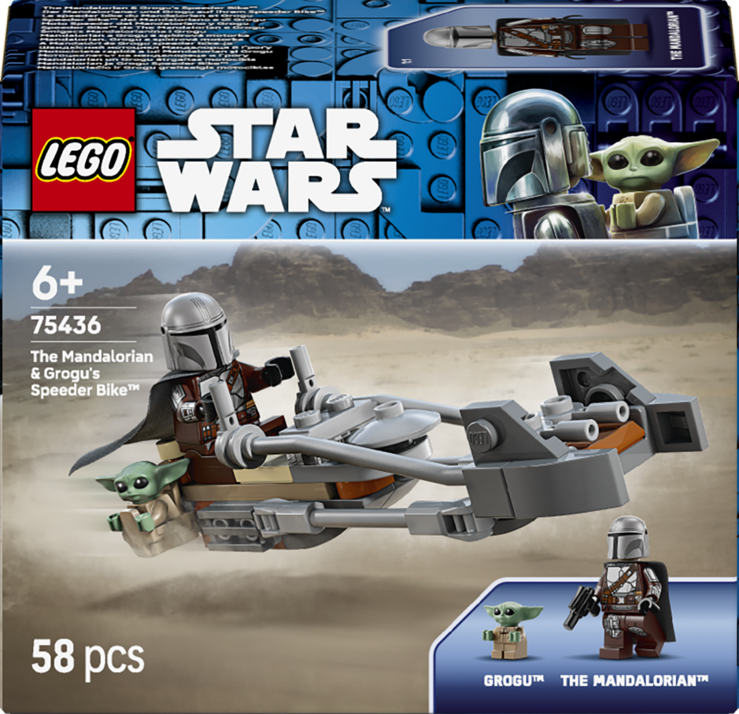 Tämän upean rakennuslelusetin parissa lapset suuntaavat Tatooine-planeetalle leikkimään Star Wars: The Mandalorian™ ‑sarjan 1. kauden tapahtumia. Mandalorialaisen ja Grogun kiituripyörän LEGO® palikkaversio (75436) on mainio pieni lahja yli 6-vuotiaille pojille ja tytöille. Mandalorialaista esittävän LEGO minihahmon voi laittaa kuljettajan paikalle ja Grogua esittävän LEGO hahmon pyörän sivulle kiinnitettyyn laukkuun. Toimintaa siivittää ajoneuvon takaosaan kiinnitettävä mandalorialaisen sädekivääri.