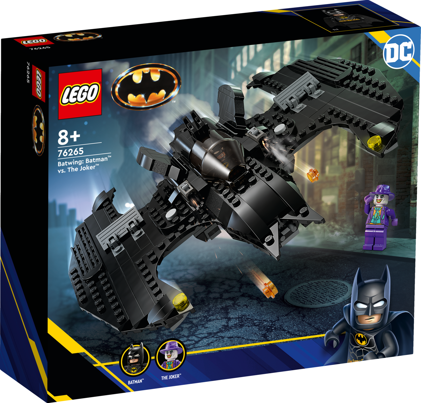 LEGO® DC Batwing: Batman™ vastaan The Joker™ (76265) setti siirtää vuoden 1989 Batman elokuvaklassikon seikkailut lasten käsiin. Ikoniset hahmot ja loputtomat korkealla kiitävät seikkailut takaavat, että nuoret supersankarit 8-vuotiaasta alkaen ovat varmasti innoissaan.