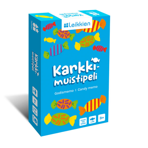 Makea muistipeli puisilla karkeilla! Löydä eniten karkkipareja ja voitat pelin. Muistipeli sopii koko perheelle ikään katsomatta! Pelissä on 20 värikästä, muotoon leikattua puista karkkia, eli yhteensä 10 paria.