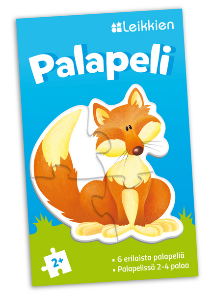 Värikäs ja suloinen eläinaiheinen ensipalapeli! Tunnistatko sammakon, mehiläisen, kanan, lampaan, karhun ja ketun? Kuvien kokoamisessa riittää puuhaa ja haastetta taitojen karttuessa. Leikkien Palapeli eläimet sisältää kuusi erilaista muotoonleikattua palapeliä, joissa 2, 3 tai 4 isoa palaa. Laadukkaat palapelit on valmistettu paksusta kartongista. Ikäsuositus: 2+