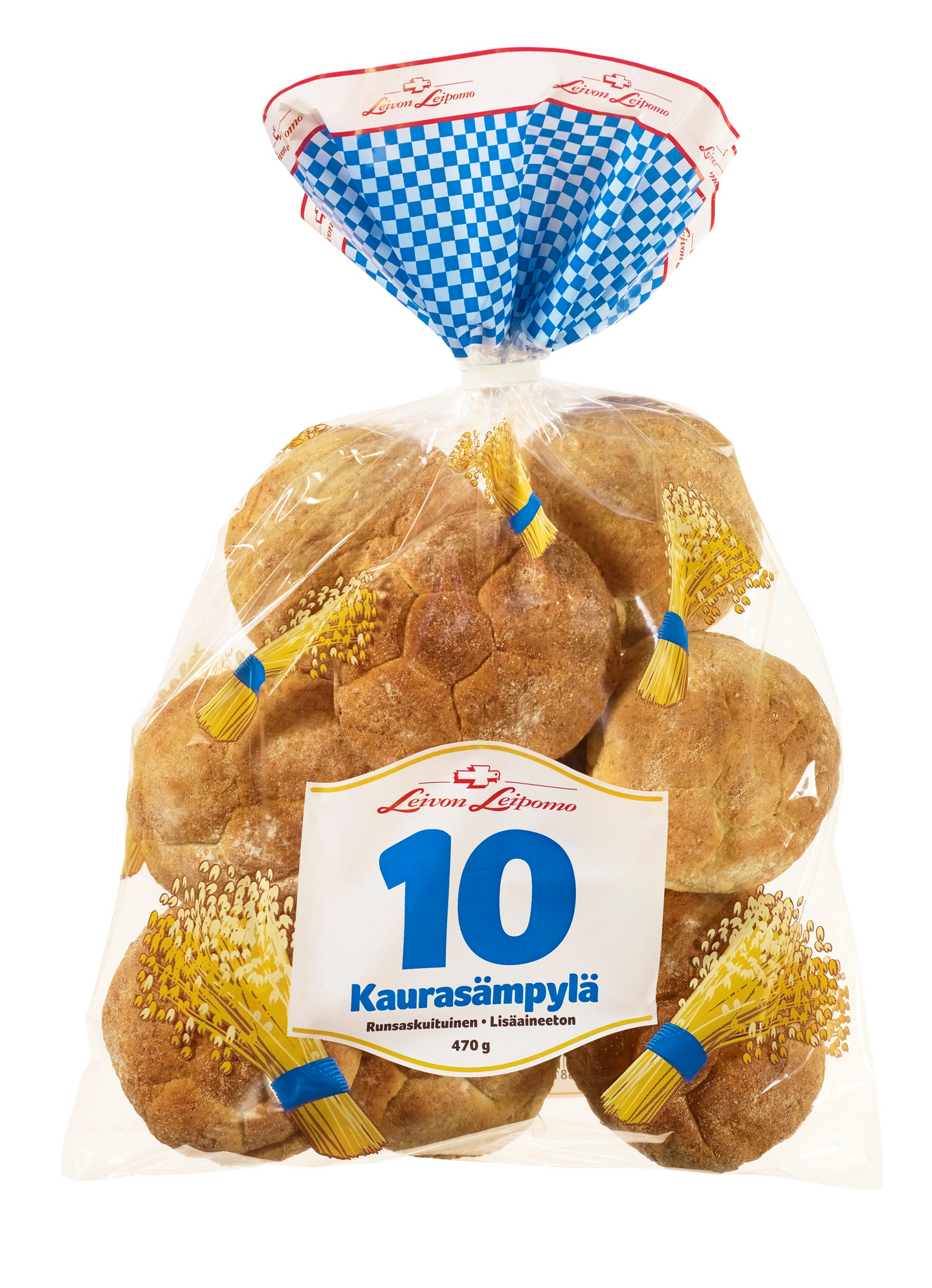 Runsaskuituinen lisäaineeton halkaistu vehnäkaurasämpylä 10kpl pussissa.