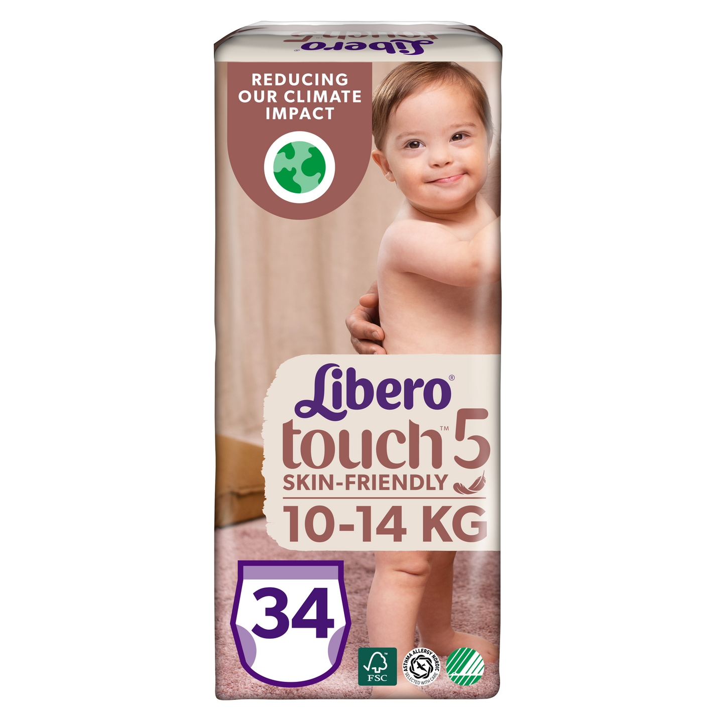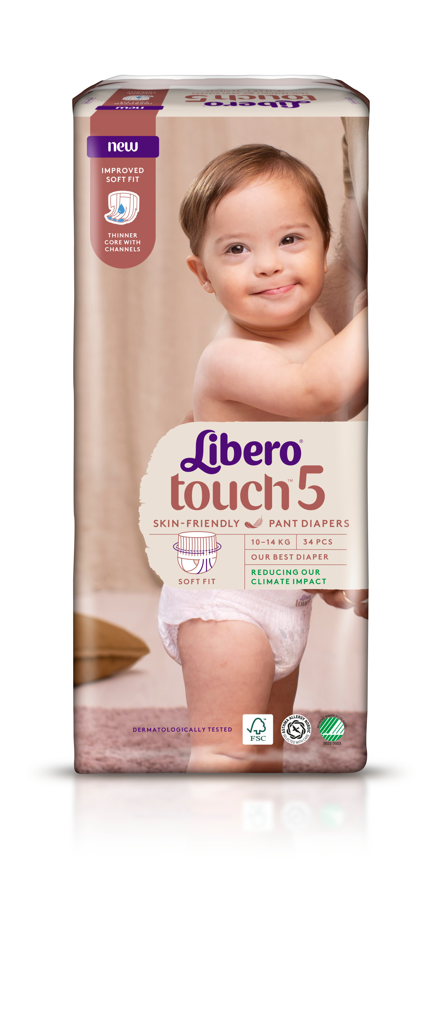 Libero Touch™ -housuvaippa on pehmein ja paras housuvaippamme mukavalla ja myötäilevällä istuvuudellaan. Koko 5 sopii täydellisesti vauvoille, jotka painavat 10-14 kg. Osana Liberon tavoitetta vähentää ilmastovaikutuksia, yli 50 % pakkauksesta on valmistettu uusiutuvista materiaaleista ja Liberon vaippatehtaissa käytetään vain uusiutuvaa sähköä. Erittäin pehmeät ja hengittävät materiaalit antavat hellävaraista suojaa ja huippuimukykyinen ydin ja kaksinkertaiset vuotosuojat pitävät vauvasi kuivana. Kosteusindikaattori muuttaa väriä ja muistuttaa, milloin on vaipanvaihdon aika. Dermatologisesti testatut vaipat ovat Joutsenmerkittyjä ja Asthma Allergy Nordicin suosittelemia.