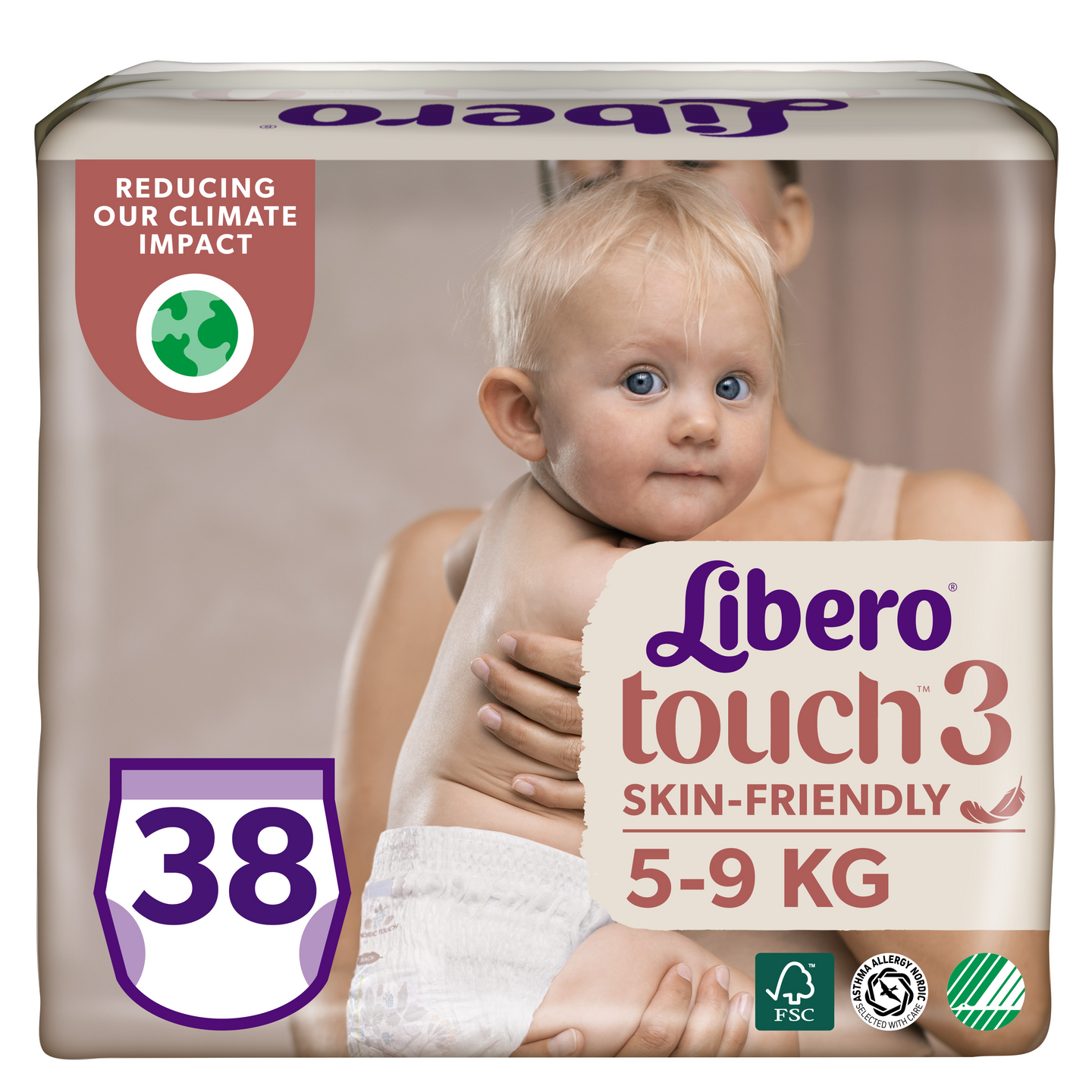 Libero Touch™ 3 -housuvaippa on Liberon pienin, pehmein ja paras - täydellinen valinta silloin, kun vauvasi alkaa liikkua enemmän. Erittäin pehmeä ja hengittävä materiaali antaa hellävaraista suojaa, kun lapsesi painaa 5-9 kg. Kosteusindikaattori muuttaa väriä ja muistuttaa, milloin on vaipanvaihdon aika. Housuvaippa on myös aina helppo vaihtaa silloinkin, kun lapsesi on vaikea olla paikallaan. Vaippa on helppo riisua repäisemällä vyötäröresori auki. Osana Liberon tavoitetta vähentää ilmastovaikutuksia, yli 50 % pakkauksesta on valmistettu uusiutuvista materiaaleista ja Liberon vaippatehtaissa käytetään vain uusiutuvaa sähköä. Dermatologisesti testatut vaipat ovat Joutsenmerkittyjä ja Asthma Allergy Nordicin suosittelemia.