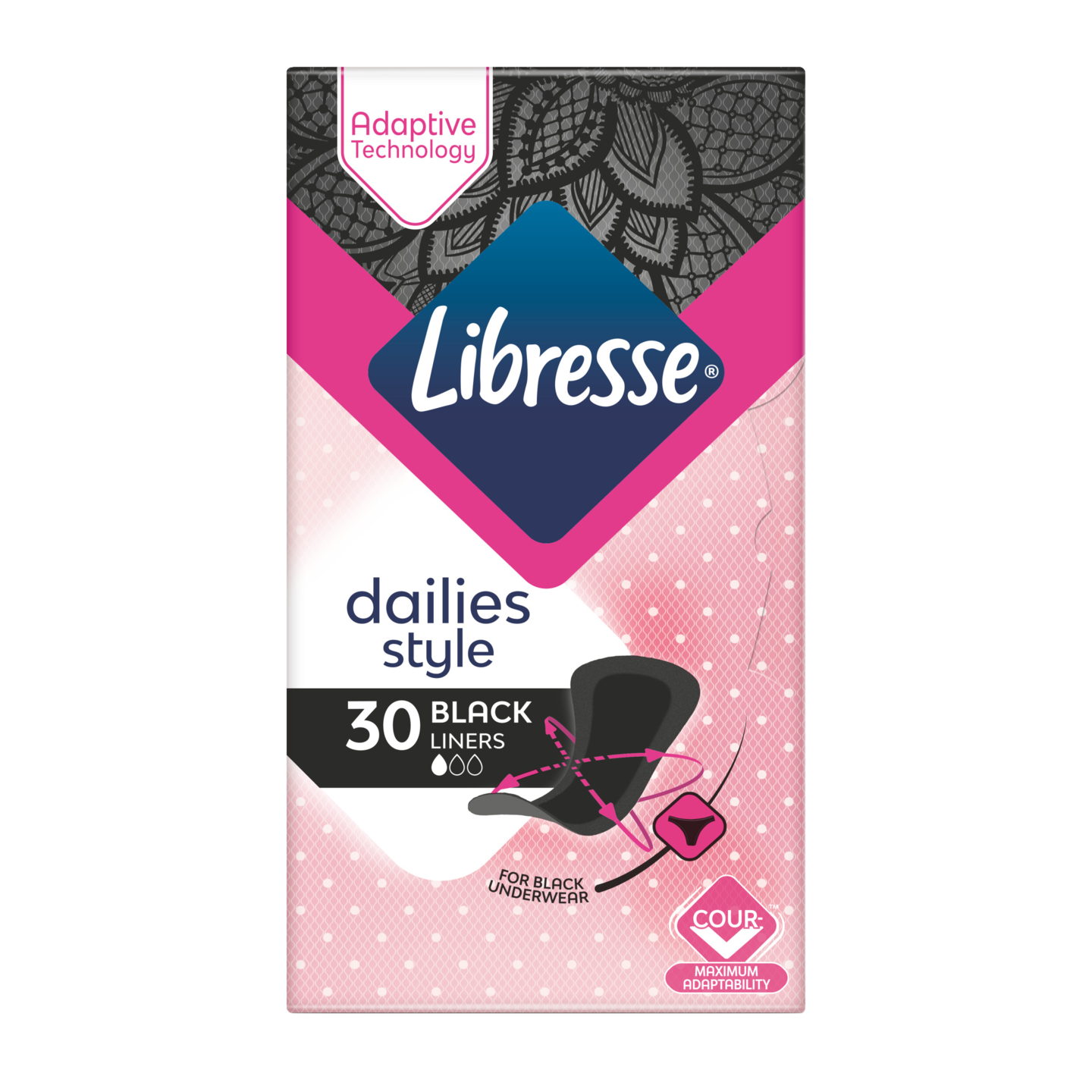 Imukykyinen Libresse Regular Black -pikkuhousunsuoja on suunniteltu erityisesti mustille pikkuhousuille. Hengittävät, kuin puuvillaiset pikkuhousut ovat täydellisiä päivittäiseen käyttöön sekä raikkaan tunteen säilyttämiseksi. CurveFit™ -ominaisuudella varustetut pikkuhousunsuojamme on suunniteltu erityisesti mukailemaan kehosi muotoja ja pysymään paikoillaan, mitä ikinä teetkin. Pikkuhousunsuojassa on pehmeä päälikerros ja se pitää sinut kuivana sekä raikkaana joka päivä. Tuote on hajusteeton.