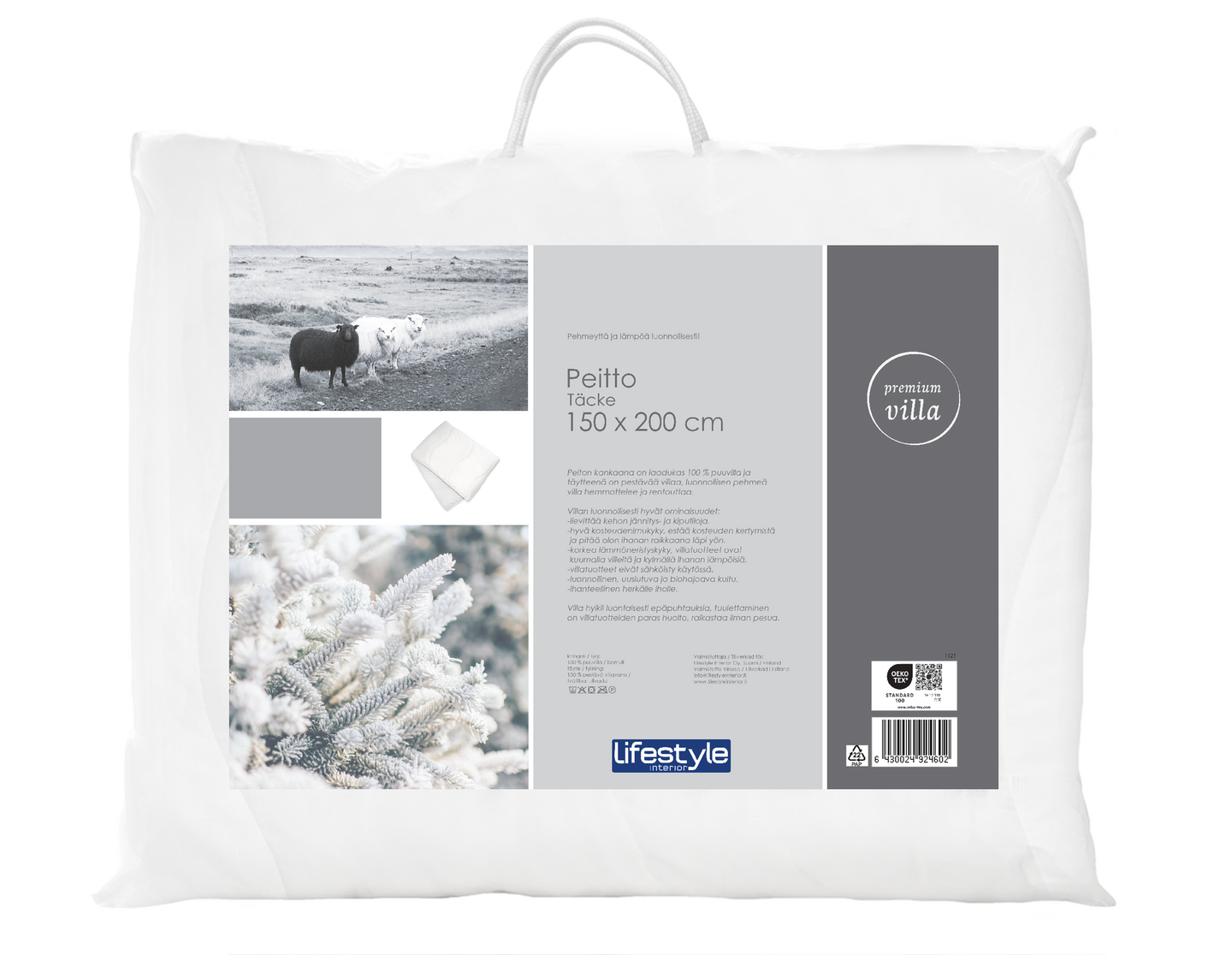Lifestyle Premium villa peitto 150x200 cm on luonnollisen ihana valinta lepoon ja rentoutumiseen. Sen pehmeä villa hemmottelee ja pitää olon ihanan raikkaana läpi yön.