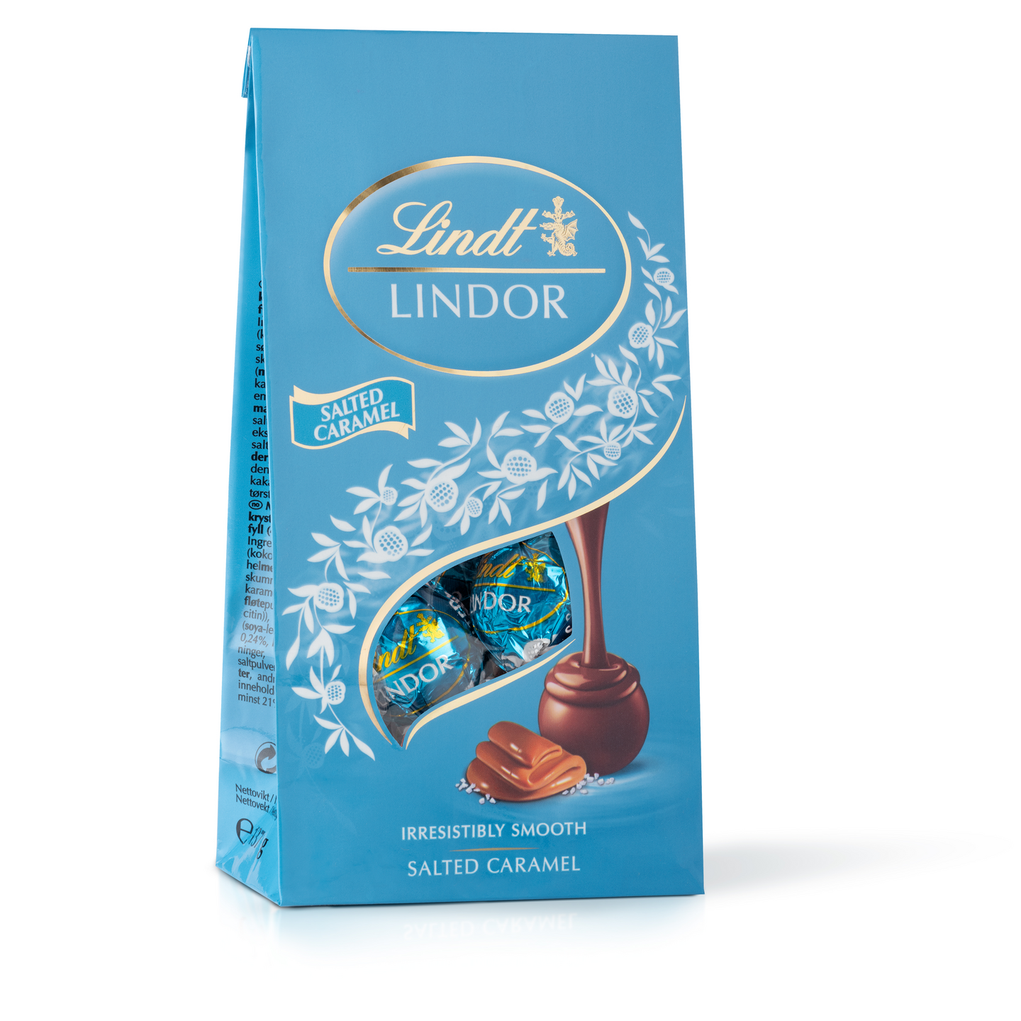 Nauti Lindtin vastustamattoman pehmeä LINDOR! Konvehdin hienoimmasta Lindt-maitosuklaasta valmistetussa herkullisessa kuoressa on ripaus merisuolaa ja sisältää pehmeän, kermaisen karamellitäytteen.Suklaareseptimme yhdistävät laadukkaimmat ainesosat ja Lindt suklaamestareiden intohimon vastustamattomille makuelämyksille. Luo itsellesi ihana LINDOR-hetki tai anna lahjaksi. Pussi sisältää noin 11 konvehtia.