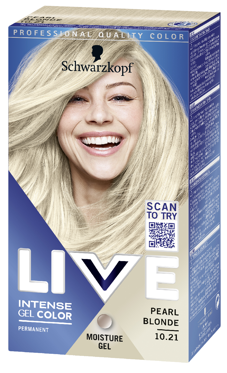 Schwarzkopf LIVE Pearl Blonde 10.21 on suomalaisten suosima, upea viileän vaalea hiusvärisävy. Kaunis väri ja hyvinvoivat hiukset samasta paketissa! Aloe vera, jojoba ja kaktus pitävät huolta hiuksistasi antaen niille kauniin terveen kiillon ja pitämällä hiuksesi kosteutettuna pitkään värjäyksen jälkeen. Värin valumaton geelikoostumus helpottaa aineen levittämistä. Pakkaus sisältää: Live-värigeeli 60 ml Kehite-emulsiopullo 60 ml Care-hoitoaine 22,5 ml Suojakäsineet Käyttöohje