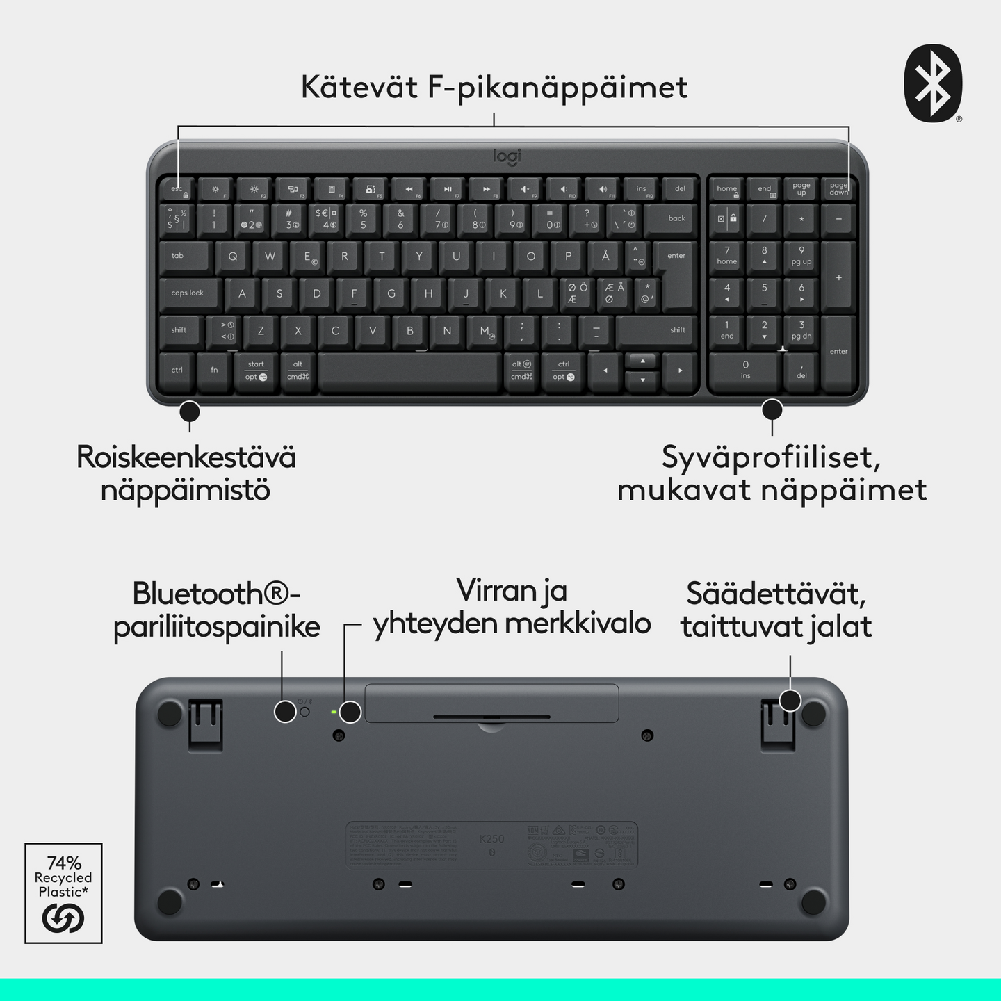 • Langaton näppäimistötekniikka: Bluetooth® Low Energy -tekniikka