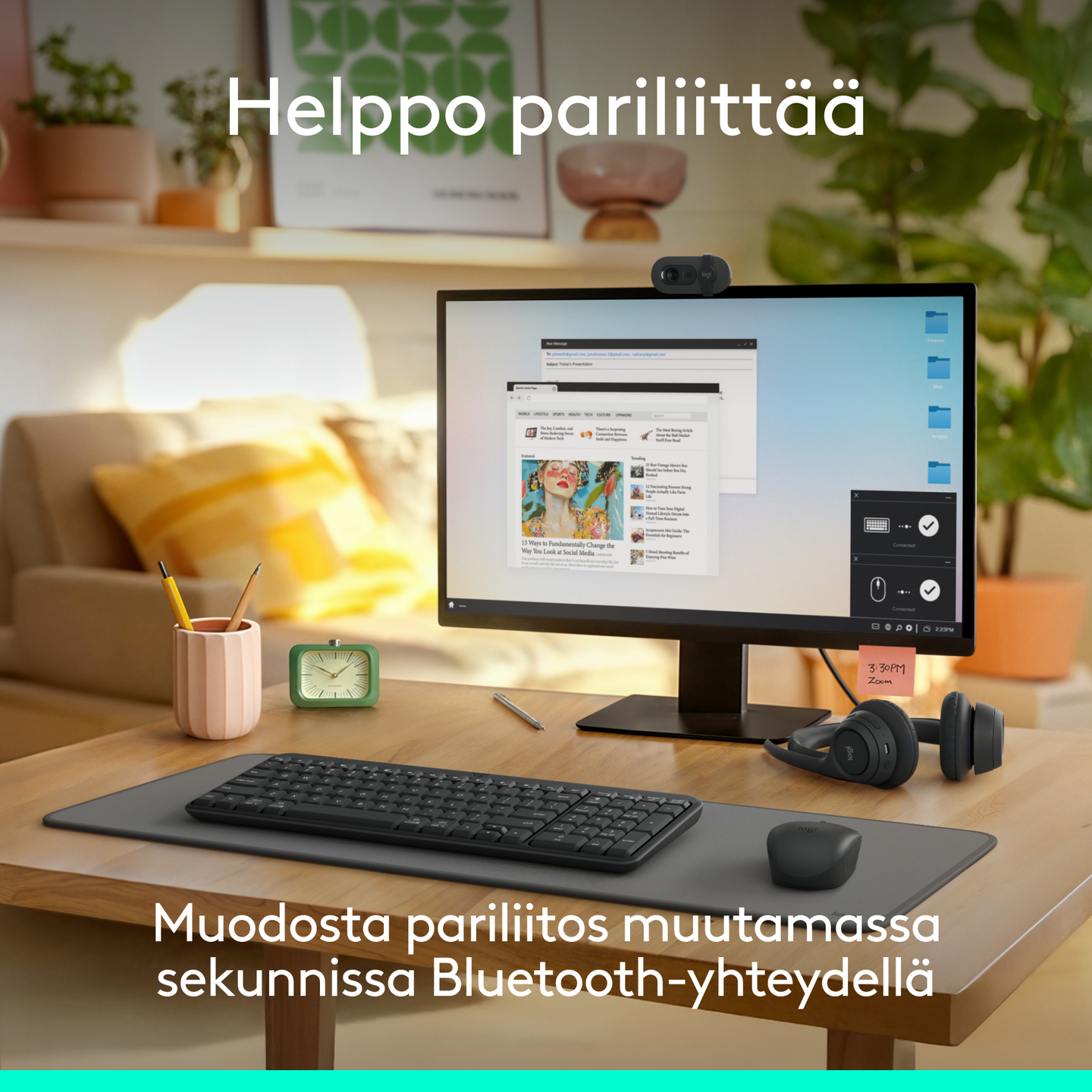 Esittelyssä Logitech MK250 Bluetooth® Combo. Pienikokoinen, miellyttävästi muotoiltu ja helppo yhdistää ja ottaa käyttöön, jotta voit keskittyä täysin käsillä olevaan tehtävään.