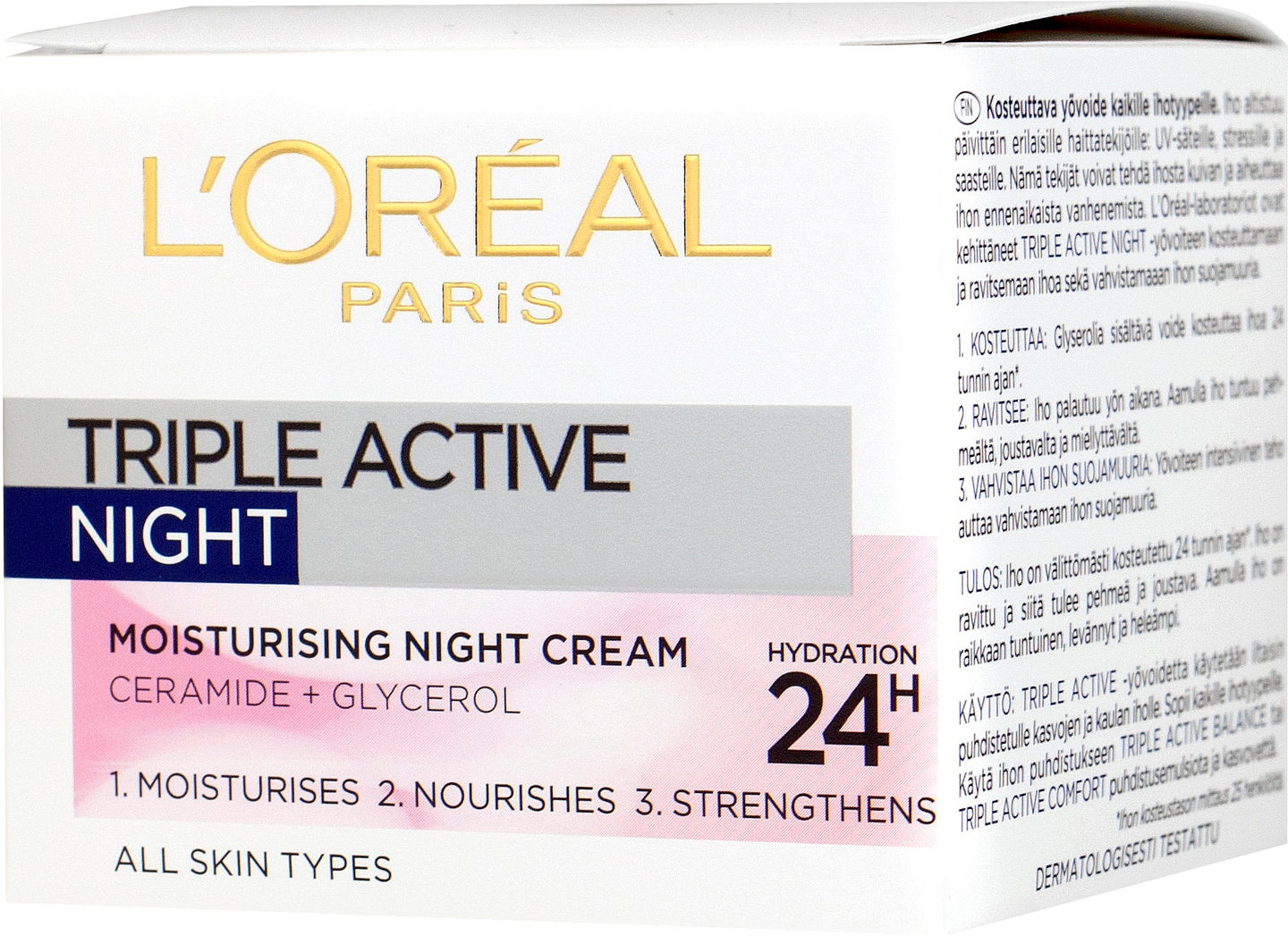 Kolmitehoinen vaikutus: 1. Kosteuttaa: Kosteuttavia glyserolimolekyylejä sisältävä voide kosteuttaa ihoa optimaalisesti. 2. Suojaa: Yövoide sisältää myös keramidia ja suojaa ihoa kuivuutta vastaan. Aamulla iho tuntuu raikkaalta ja levänneeltä. 3. Ravitsee ihoa: Ihosta tulee palautunut ja ravittu yön aikana. Tulos: Iho on välittömästi kosteutettu ja tuntuu pehmeältä ja miellyttävältä. Aamulla iho tuntuu raikkaalta ja levänneeltä sekä on sädehtivän heleä. Yövoidetta käytetään iltaisin puhdistetulle kasvojen ja kaulan iholle. Sopii kaikille ihotyypeille, jopa herkälle iholle.