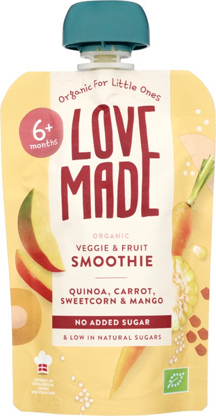 Omistautuneiden vanhempien ja Michelin-tähtikokin Tanskassa perustama LoveMade on luotu sitoutuen huolenpitoon. Luomu smoothiemme, puuromme ja soseemme on kehitetty pienokaistemme parasta ajatellen. Ei lisättyjä sokereita. Sokeria sisältäviä hedelmiä vähemmän. Ravitsevampaa ja luonnollisia makuja.