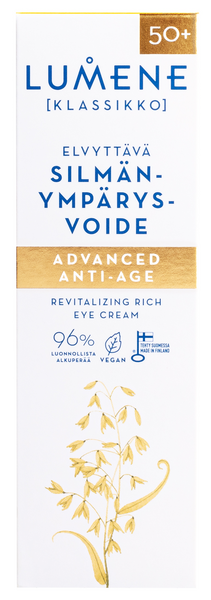 Tuo esiin silmiesi nuorekas ilme, tällä tasoittavalla ja kosteuttavalaa silmänympärysvoiteella. Klassikko Anti-Age Tasoittava Silmänympärysvoide heleyttää ihoa ja on kehitetty näkyviä ikääntymisen merkkejä vastaan: auttaa häivyttämään juonteita, naururyppyjä ja tummia silmänalusia. Hajusteeton.