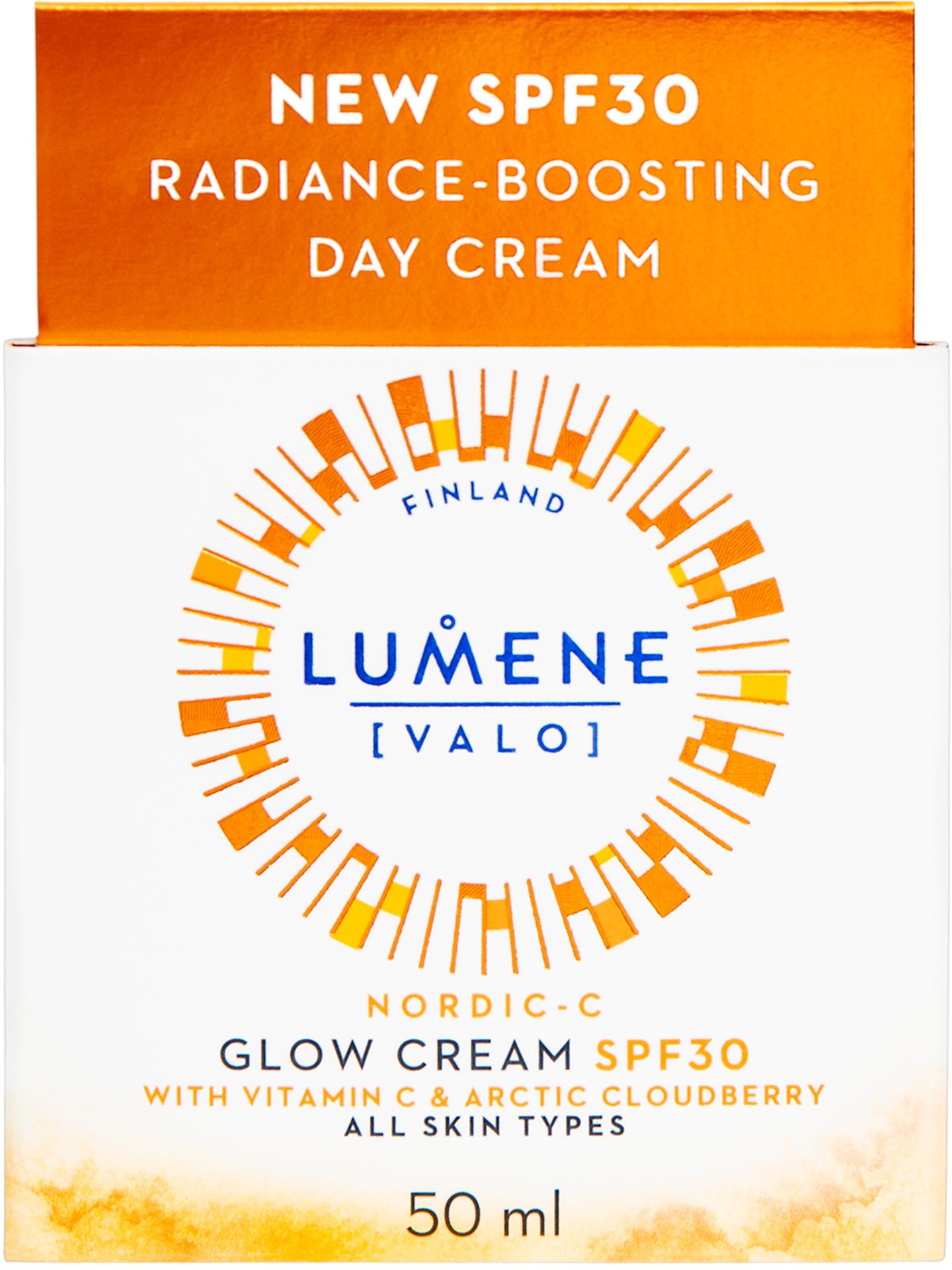 LUMENE Nordic-C [Valo] Heleyttävä päivävoide SPF30 kosteuttaa, heleyttää ja suojaa ihoa UVA/UVB-säteiden haitallisilta vaikutuksilta (SPF30). Sisältää heleyttävää pohjoista lakkaa sekä C-vitamiinia ja hyaluronihappoa. Valoa heijastavat pigmentit antavat välittömän hehkun iholle. Vegaaninen koostumus sisältää sivuvirroista saatavia ja luonnosta käsin poimittuja raaka-aineita. Kosteusvoiteen purkki on tehty biopohjaisesta muovista* ja se on kierrätettävä. Vegaaninen koostumus sisältää sivuvirroista kehitettyjä ja pohjoisen luonnosta peräisin olevia raaka-aineita. *Massataseperiaate sertifioidulla arvoketjulla.