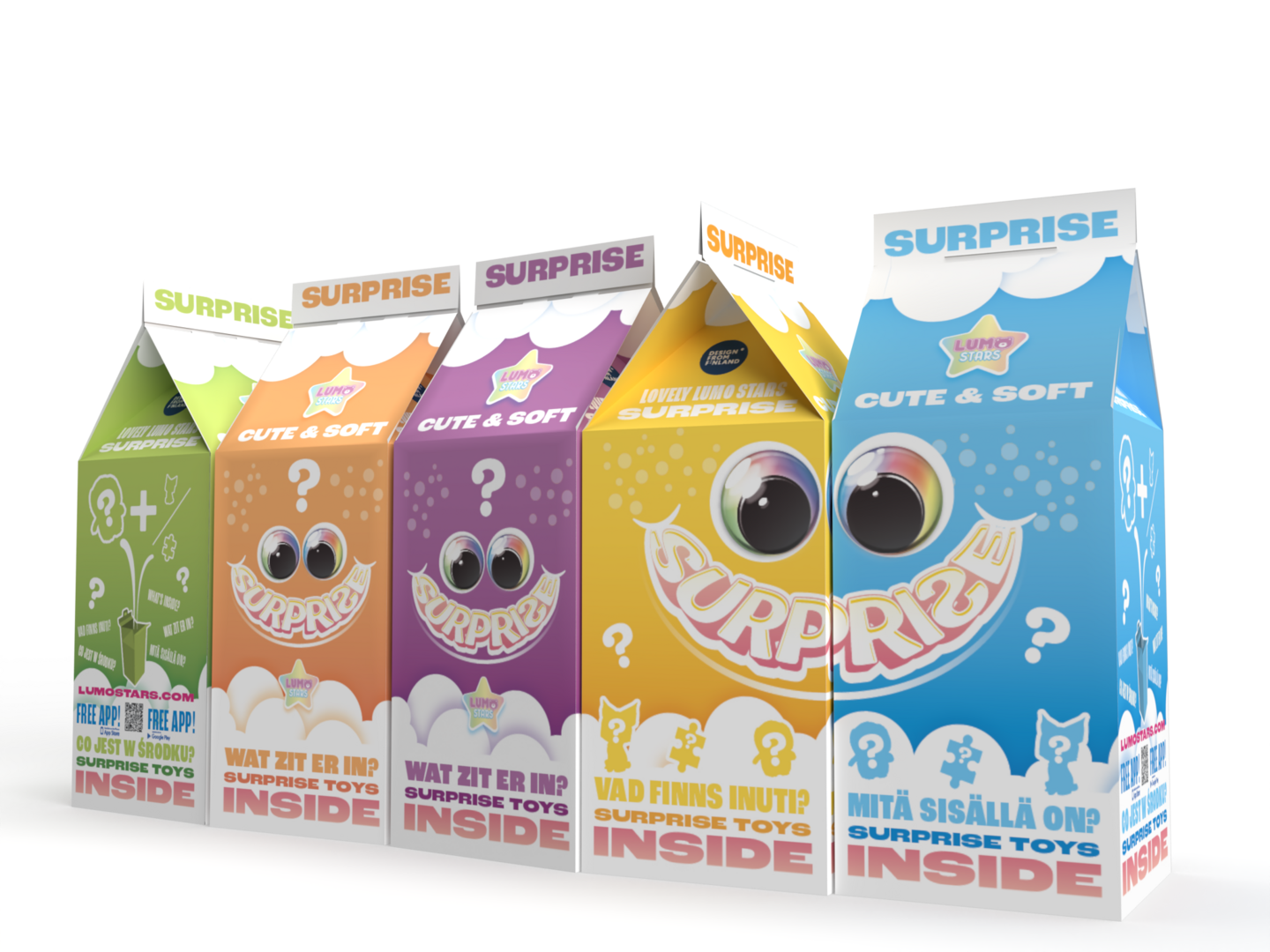 Sarjaan sisältyy viisi erilaista yllätyslaatikkoa. Jokaisessa laatikossa on Lumo Stars pehmolelu + Lumo Stars figu TAI Lumo Stars 56 palan palapeli. Kerää kaikki!