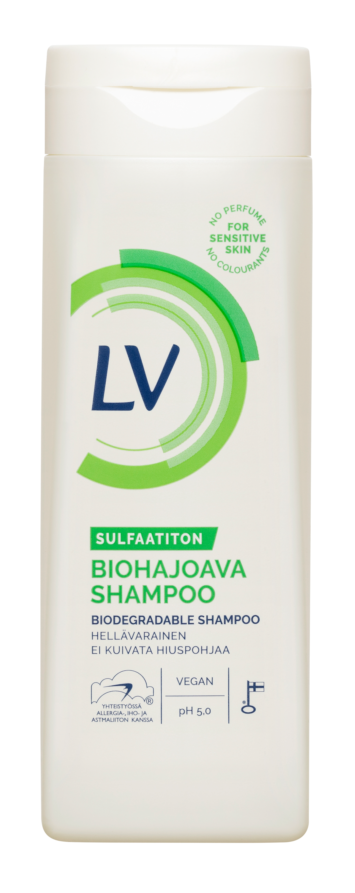 Sulfaatiton. Pehmeästi vaahtoava ja hellävaraisesti puhdistava shampoo värjätyille, kiharille, kuiville ja käsitellyille hiuksille. Sopii myös herkälle hiuspohjalle. Auttaa säilyttämään hiuspohjan omat luonnolliset öljyt, edistäen näin hiuspohjan hyvinvointia. Sopii myös CG-metodiin. Hajusteeton ja väriaineeton. Kehitetty yhdessä Allergia- ja Astmaliiton kanssa. Valmistettu Suomessa ja tuotteelle on myönnetty Avainlippu-tunnus.