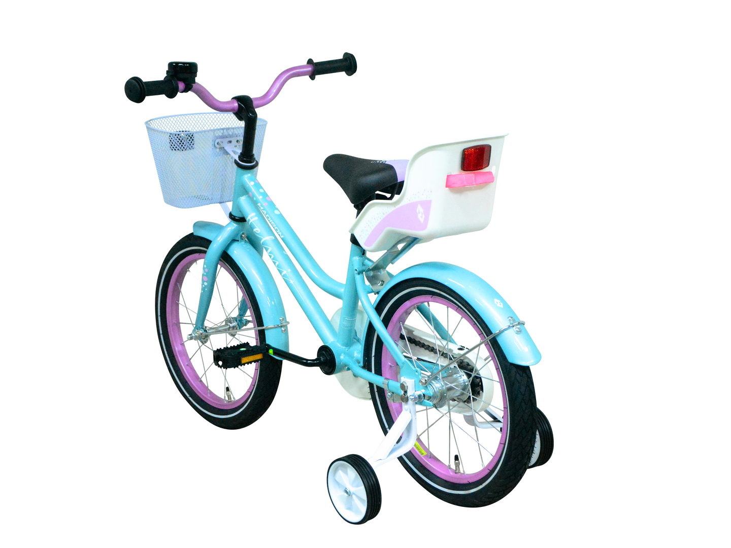 Helmessä on lokasuojat, nukenistuin, apupyörät, etukori, soittokello ja heijastimet vakiovarusteena.
