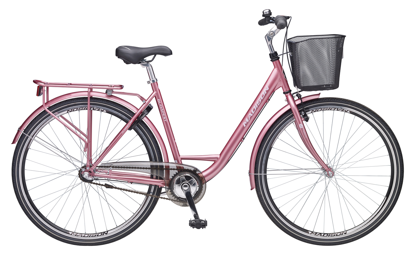 Madison 28'' Budapest 3-vaihteinen naisten koripyörä. HiTen -erikoisterästä. Shimano Nexus 3 -vaihteisto. Jalkajarru ja V-jarru edessä. Runkolukko, säädettävä ohjainkannatin, etukori ja heijastimet. Paino 17,3 kg.