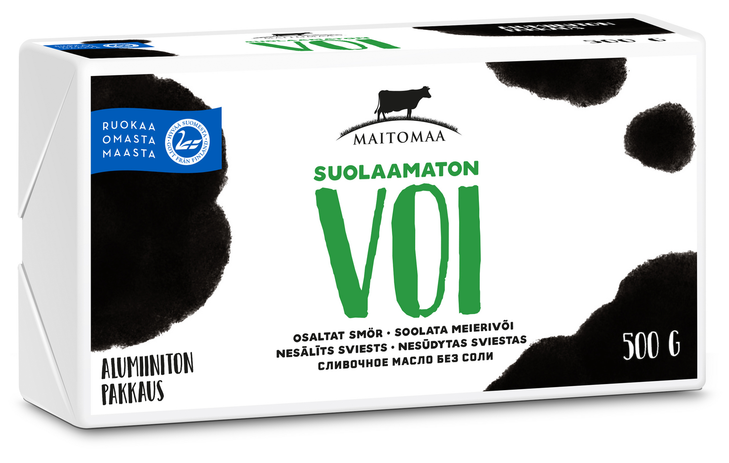 Kermasta se syntyy – eikä muuta tarvita! Suolaisuuden voit säädellä itse, mikä on plussaa erityisesti leivonnassa. Maitomaan kaikki voit sopivat leivälle, leivontaan, ruoanlaittoon ja paistamiseen. Voit on pakattu luontoystävällisempään, alumiinittomaan kääreeseen. Suolaamaton voi on valmistettu sympaattisessa savolaisessa Maitomaan meijerissä, Suonenjoella. Vähälaktoositon. Lisäaineeton.