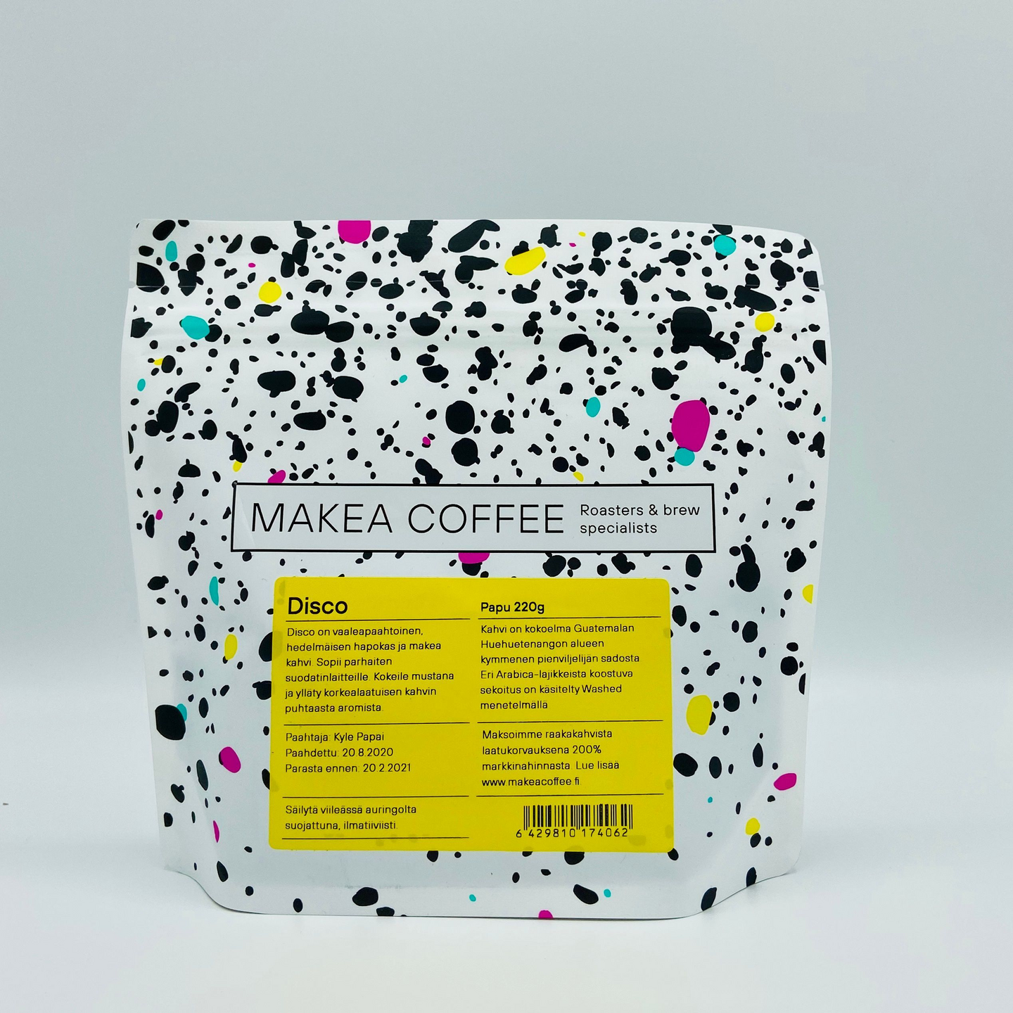 Disco on Makea Coffeen ympärivuotisessa myynnissä oleva vaaleapaahtoinen, herkullisen hedelmäinen kahvi Guatemalasta. Huehuetenangon alueen pienviljelijät tekevät korkealaatuista työtä jonka maistat kupissa puhtaina aromeina ja pehmeänä makeutena.