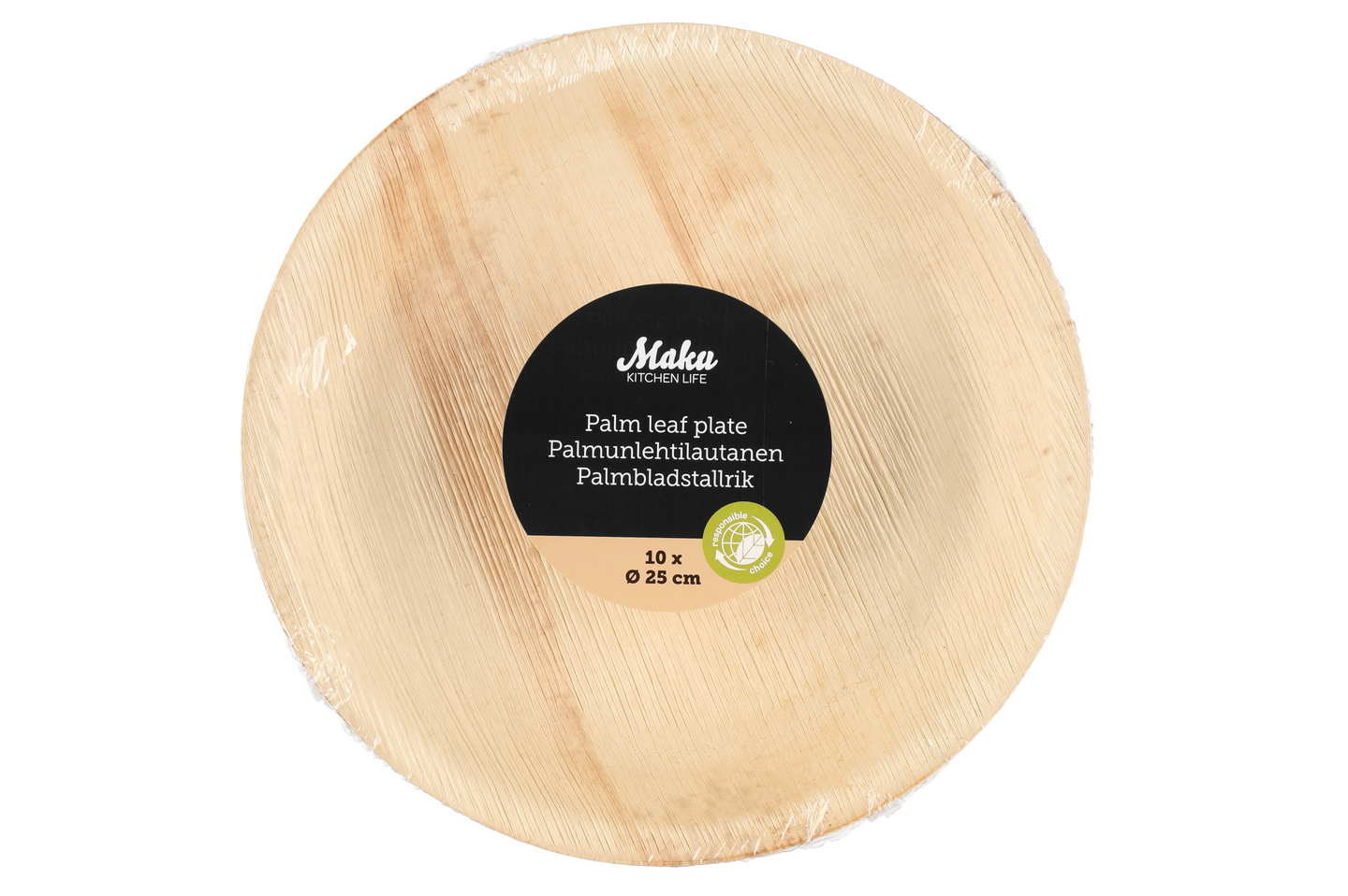 Tukeva pudonneista palmunlehdistä valmistettu kertakäyttölautanen. 100 % luonnontuote. Biohajoava, hävitä tuote biojätteenä, kotikompostissa tai polttamalla. Lautasen korkeus on 2,5cm ja käyttötilavuus nesteellä täytettynä on 0,4L.