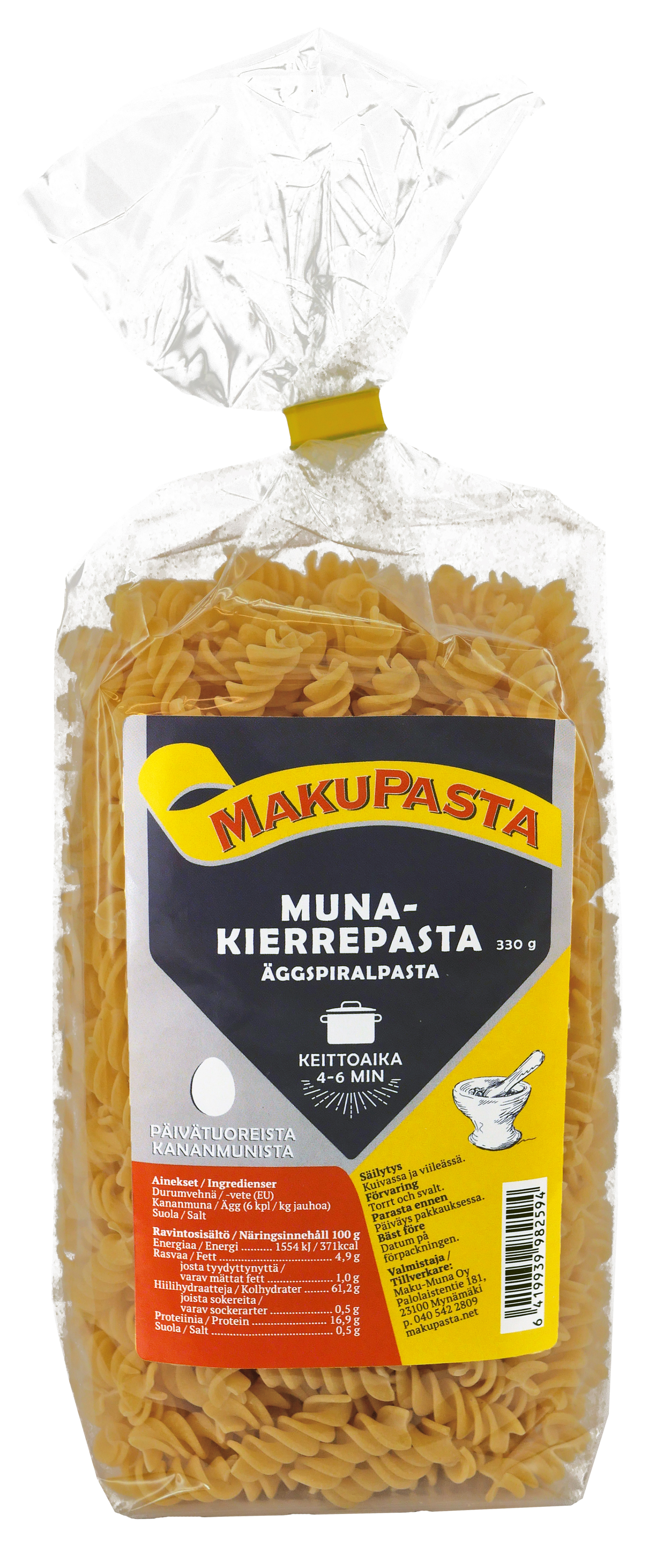 Pienen kotimaisen pastatehtaan päivätuoreista kananmunista valmistama laadukas pasta.